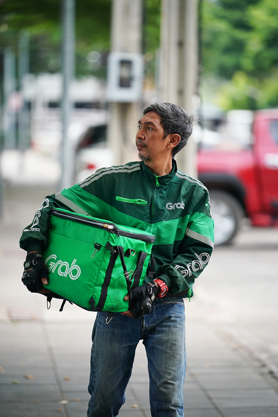 คมสัน เล่าว่า ด้วยความที่ชอบขี่รถมอเตอร์ไซค์เป็นทุนเดิม และอยากทดลองทำอะไรใหม่ ๆ จึงลองมาขับแกร็บตั้งแต่ก่อนเกิดโรคโควิด “พอดีมีน้องที่ทำงานขับแกร็บอยู่ก่อนแล้ว ผมก็ถามเขาว่าเป็นยังไงบ้าง เพราะเราชอบขี่มอเตอร์ไซค์อยู่แล้ว ก็คงเหมือนขี่รถเล่นแถมได้เงินด้วยเลยลองสมัครดู ช่วงแรก ๆ ก็วิ่งตอนกลางคืนหลังเลิกงาน วิ่งได้ครึ่งเดือนโรงแรมก็ปิด ตอนนี้ก็เลยเป็นเหมือนงานหลักไปแล้ว ผมรับทั้ง GrabFood (ส่งอาหาร) แล้วก็ GrabExpress (ส่งพัสดุ) ก็ถือว่าตื่นเต้นดีนะ แม้จะเหนื่อยแต่ก็ท้าทาย ต้องวิ่งไปในที่ที่ไม่เคยไป แล้วแต่งานจะพาไป อย่างเมื่อวานผมประจำที่พัฒนาการ ไปส่งแถว ๆ รามสอง แล้วมีต่อจากรามสอง ไปปทุมธานีเพื่อส่งเอกสาร พอได้งานที่ต้องวิ่งไปไกล รายได้มันก็ดีไปด้วย ในวันหนึ่ง ๆ พอวิ่งอยู่ที่ประมาณ 10 – 15 งาน รายได้ก็ถือว่าโอเคเลย”