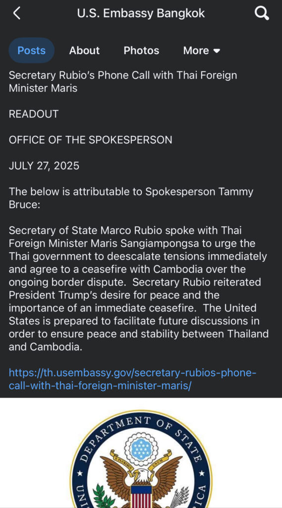 Brickinfo News Agency – U.S. Secretary of State Marco Rubio recently held discussions with Thai Foreign Minister Maris Sangiampongsa, urging the Thai government to immediately de-escalate tensions and agree to a ceasefire with Cambodia amid their ongoing border dispute. The call, which took place on July 27, 2025, underscored the United States’ commitment to fostering peace and stability in the region.
