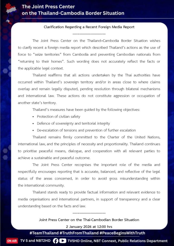 Thailand Rejects Foreign Media Reports Alleging Seizure of Cambodian Territory