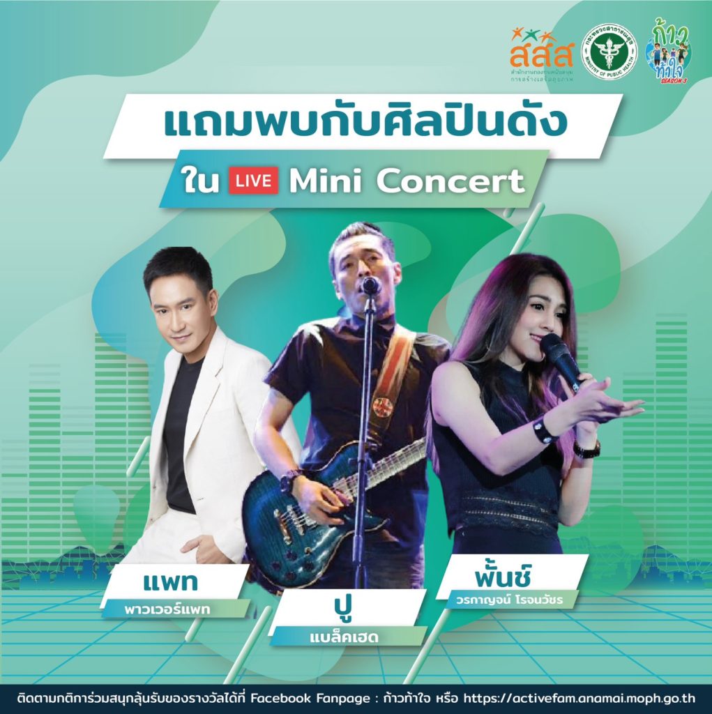 โดยแฟนๆ สามารถร่วมสนุกพร้อมกันได้ที่ เฟซบุ๊กแฟนเพจ ก้าวท้าใจ ในวันที่ 20 สิงหาคม 2564 เวลา 18.00 น. เป็นต้นไป นอกจากนี้ยังมีกิจกรรมสนุก ๆ ที่จะให้ทั้งความบันเทิง และความรู้ด้านการออกกำลังกายและด้านสุขภาพที่มีประโยชน์ต่อผู้ชมทุกท่าน สามารถร่วมกิจกรรมและสะสม Health Point รับของรางวัลอีกมากมาย ลงทะเบียนก้าวท้าใจ season 3 ทาง Line ID : @thnvr หรือคลิก https://lin.ee/aO1A5yt