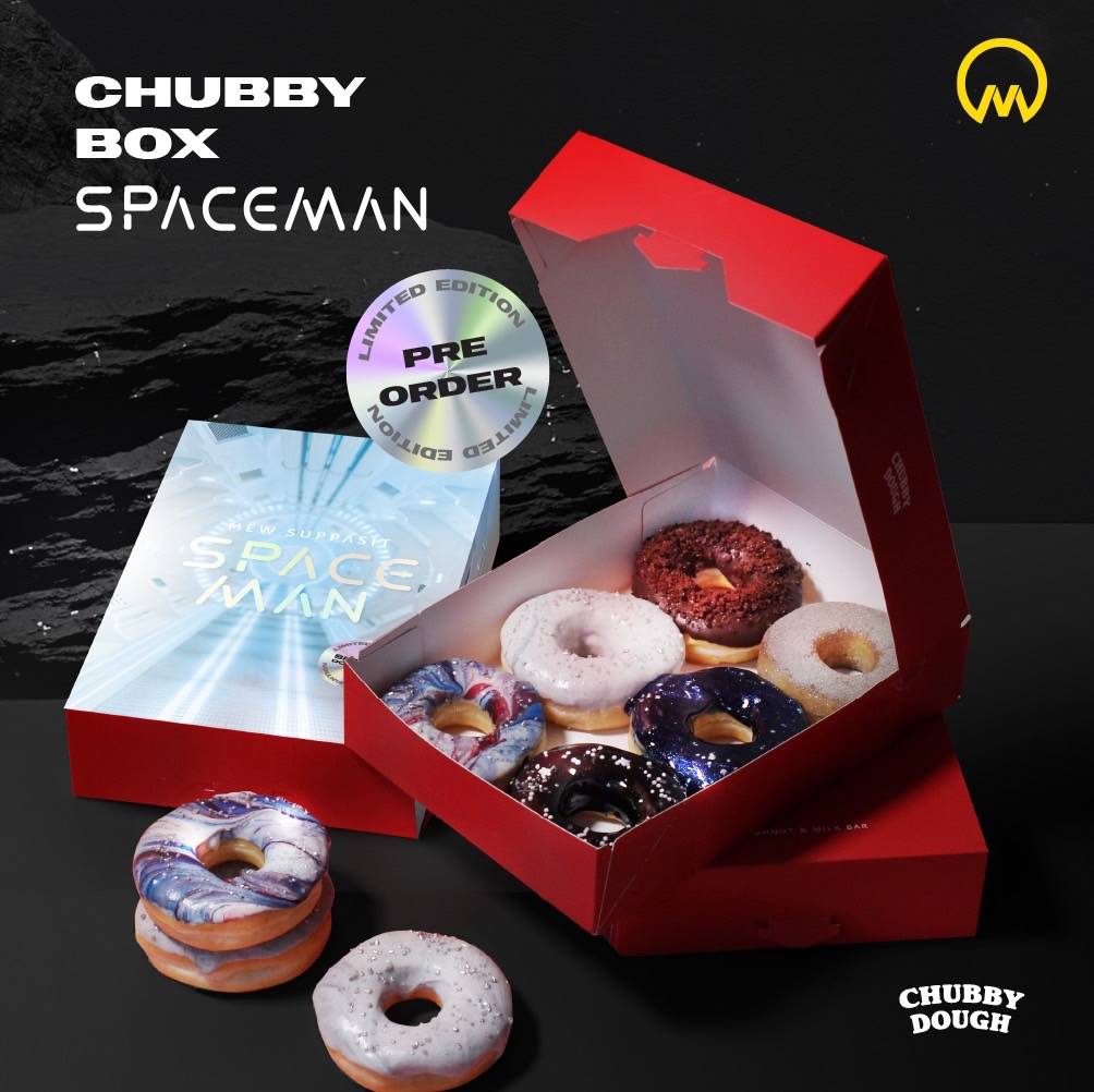 - Chubby Box Set x Mew SPACEMAN โดนัทเซทสุดพิเศษ ที่พรีเมี่ยมทั้งกล่องและรสชาติโดนัทภายใน พบกับโดนัทสุดพิเศษเซทท่องอวกาศ รสชาติใหม่ทั้ง6ชิ้น ทำมาเฉพาะสำหรับ คอลเลคชั่น Mew Spaceman เท่านั้น! ในราคา 550 บาท