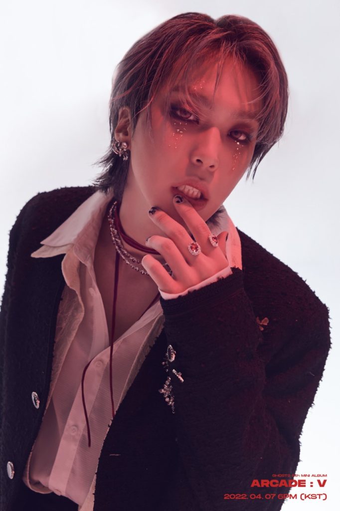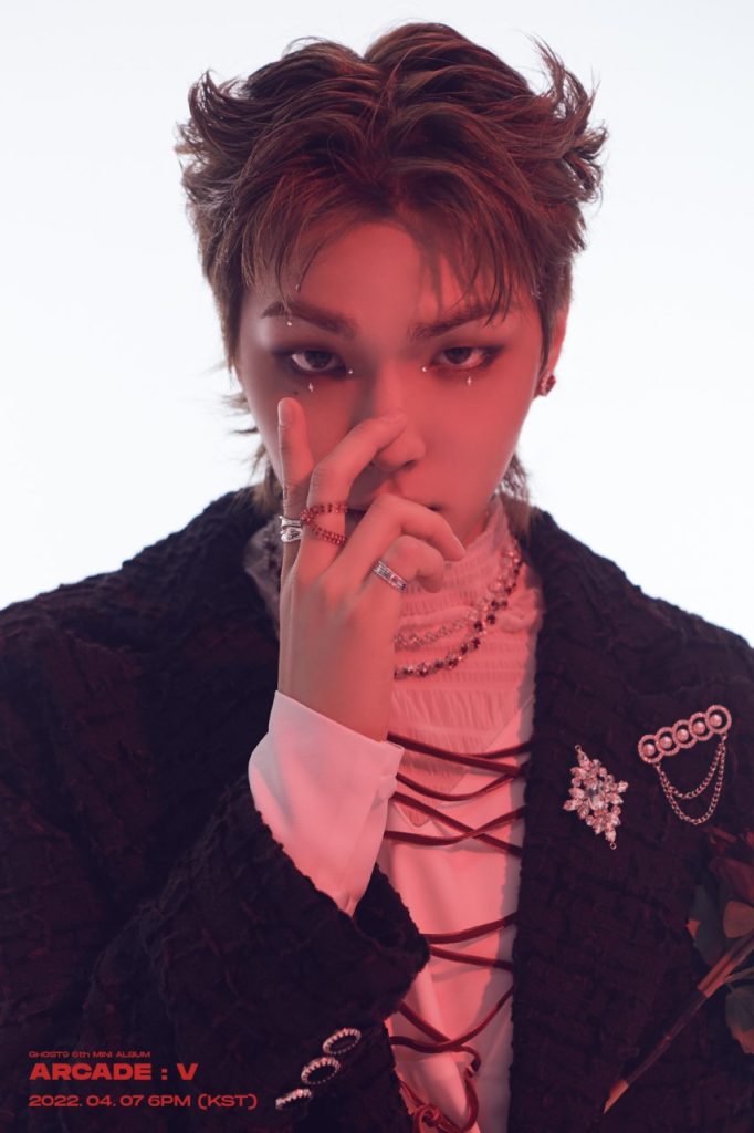 การกลับมาพบกับแฟนๆ ทั่วโลกของหนุ่มๆ GHOST9 ในครั้งนี้ เปี่ยมไปด้วยภาพลักษณ์ที่แข็งแกร่งขึ้นไปอีกขั้น และเสน่ห์ที่แปลกใหม่ไม่เหมือนใคร GHOST9 จะถ่ายทอดบทเพลงแห่งการเดินทางครั้งใหม่ที่เริ่มต้นในอาร์เขตลึกลับ พร้อมกับเมสเสจ ‘คำสาบาน (VOW)’ ผ่านมินิอัลบั้มนี้ – “คำสาบานที่จะมอบรักแด่คุณ” อัลบั้ม [ARCADE: V] มาพร้อมกับเพลงไตเติ้ล ‘X-Ray’ ที่จะแสดงให้เห็นถึงโชว์ที่ยอดเยี่ยมสง่างามของ GHOST9 กับเรื่องราวในช่วงเวลาที่อาทิตย์อัสดงอันน่าอัศจรรย์ได้ผ่านพ้นไป กลายเป็นค่ำคืนในคืนเมืองหลวงที่เจริญหูเจริญตาอย่างก้าวกระโดด และประกอบไปด้วย 6 บทเพลงในอัลบั้ม ที่จะให้ทั้งความรู้สึกเหนือจินตนาการและน่าหลงใหล เข้ากันได้ดีในช่วงเวลาแห่งการกล่าวคำสาบานเพื่อมอบแด่ผู้เป็นที่รัก