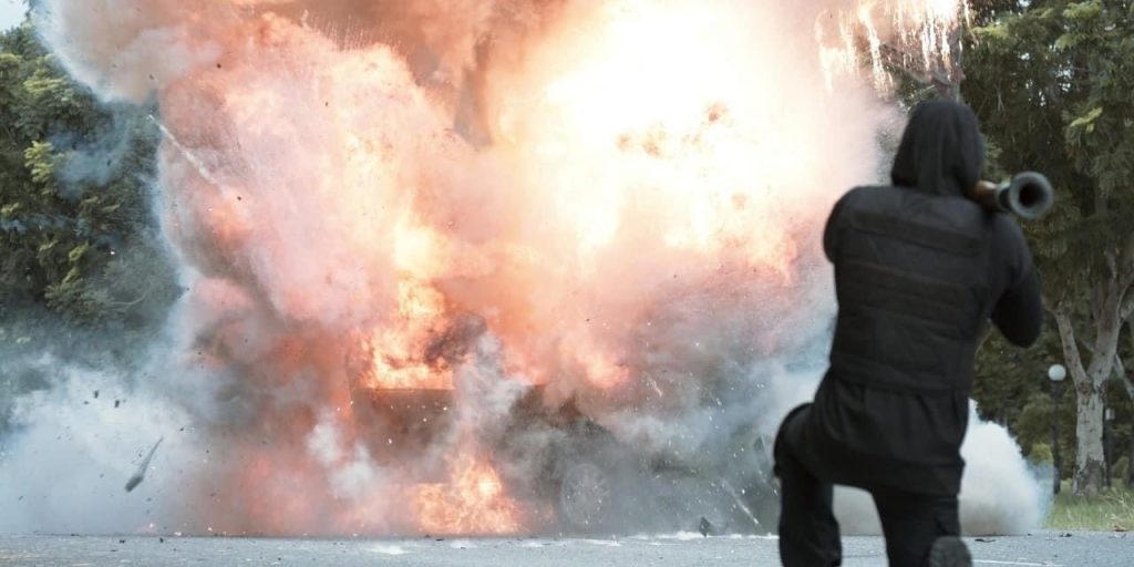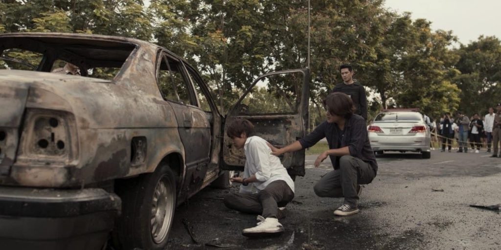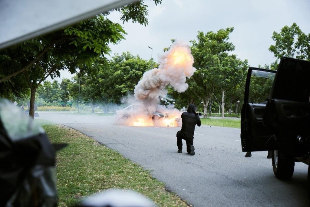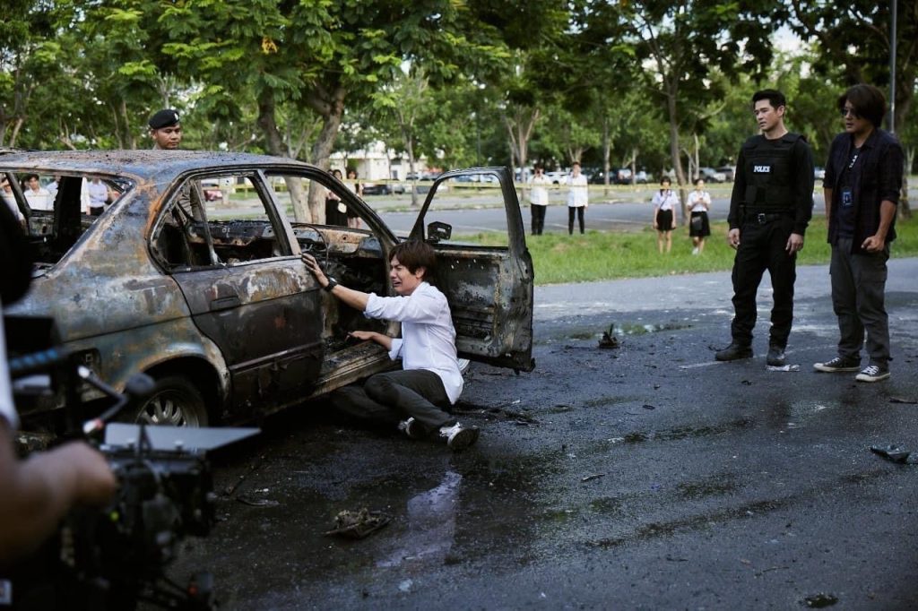 ส่วนอีกหนึ่งฉากสำคัญ นั่นคือ ฉาก มาสเตอร์ราเชน ถูกฆ่าตาย หลังจากมาส่ง บีม ลูกชายสุดที่รักที่มหาวิทยาลัย ขากลับถูกพวกนักฆ่าตามประกบ ใช้ปืนอาก้า และระเบิดรถตู้ม….เละแบบไม่มีชิ้นดี ฉากนี้ทีมงานใช้สถานที่ของมหาวิทยาลัยแห่งหนึ่งเป็นสถานที่ถ่ายทำ ซึ่งฉากนี้ถือได้ว่าเป็นหนึ่งฉากสำคัญที่ทำให้เกิดเรื่องราวต่างๆ มากมาย ฉากระเบิดในแต่ละฉาก จะมีทีมงานคอยเซฟตี้ทุกฝ่ายเป็นอย่างดี เพราะคุณโจ ผู้จัดฯ + ผู้กำกับฯ คำนึงถึงความปลอดภัยของนักแสดงและทีมงานเป็นสำคัญ หลังถ่ายทำฉากระเบิดเสร็จ ฉากต่อไปเป็นฉากดราม่าครั้งสำคัญของ หนุ่มจุง-อาเชน ที่เขาบอกว่าเป็นฉากที่ยากที่สุดในชีวิตการแสดง เพราะเป็นฉากที่ต้องใช้อารมณ์เศร้าและร้องไห้แบบสุดขีด ก่อนถ่ายทำฉากนี้หนุ่มจุง จึงขอเวลาสักครู่ เพื่อทำอารมณ์กับฉากนี้