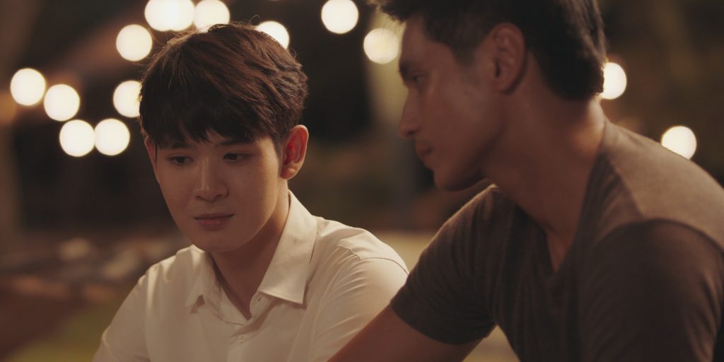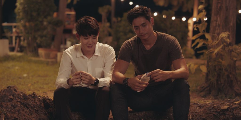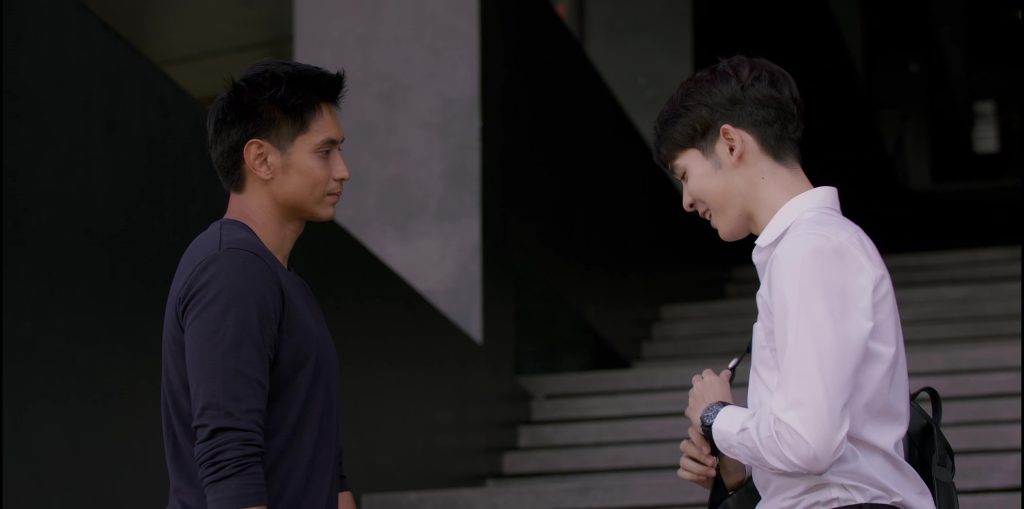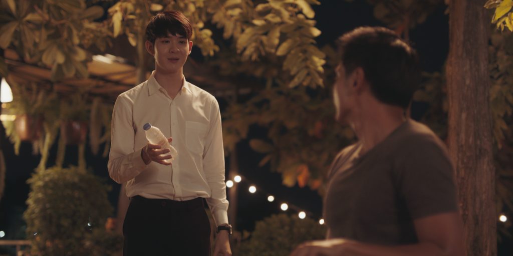 โดยหนุ่มธันน์เล่าถึงฉากนี้ให้ฟังว่า “สเว็นจะเป็นคนเงียบๆ พูดน้อย พอวันหนึ่งได้มารู้จักครอบครัวบีม เขาเริ่มยิ้มเป็น เริ่มมีชีวิตมากขึ้น เราต้องส่งความรู้สึกออกไป ไม่แววตาก็สีหน้า ยากนะ อยากจะบอกว่าเมื่อยหน้ามาก เพราะตัวละครคนอื่นพูดอะไร แต่เราจะแสดงความรู้สึกอย่างเดียว มีความโวยวายแปลกใหม่ดี ฉากนี้ ได้คุยกับผู้ชาย ได้ส่งสายตาให้กัน ก็ดีนะ แรกๆ ก็เขินนะครับ แต่พอเล่นไปสักพัก เราก็เริ่มดีขึ้น เพราะน้องเขาก็เล่นดี น่ารักดีครับ”