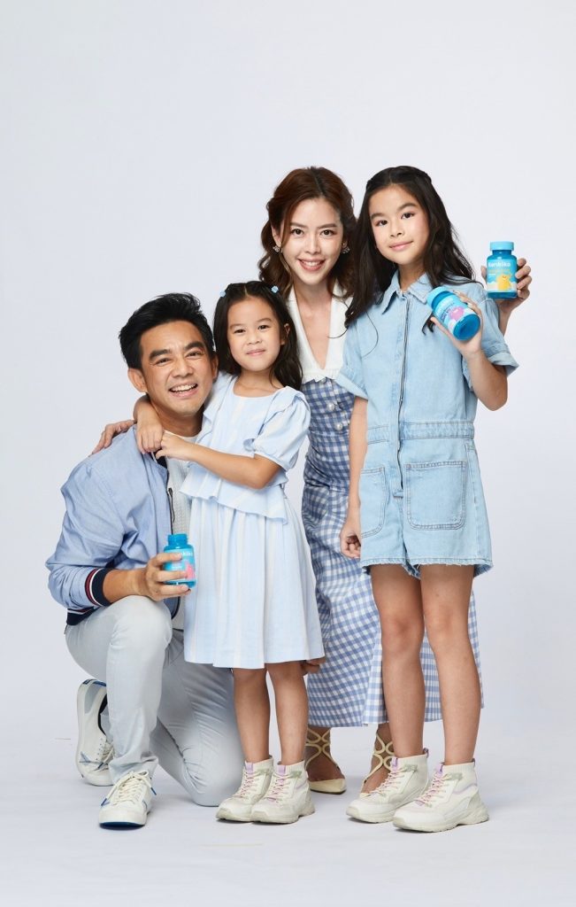 ปิดท้ายด้วยคุณพ่อสายแดนซ์ มอส-ปฏิภาณ ปฐวีกานต์ ที่พาลูกสาวคนสวย น้องโสน-สิสราญ และน้องสวรรค์-ธานธาดา ปฐวีกานต์ มาร่วมกับ Kenkiko Gummy ว่า “อยากให้ลูกได้ทำงานตั้งแต่เด็กๆ ว่ากว่าจะได้เงินมาต้องทำยังไง ซึ่งทั้งสองคนให้ความร่วมมือเป็นอย่างดี เพราะบอกว่ามาทำงานนะไม่ได้มาเล่นอย่างเดียว ซึ่งมีการเตรียมตัวก่อนมาอันนี้ถือว่าผ่าน ปกติลูกๆ กินยากมากแล้วจะเลือกกิน แต่พอลองกินวิตามินเก็นคิโก๊ะเด็กๆ ชอบและกินง่ายไม่ต้องบังคับ การที่ให้ลูกๆ หันมากินวิตามินเสริมเป็นเพราะโสนจะมีปัญหาเรื่องภูมิแพ้ สวรรค์จะมีเรื่องทานน้อย ใช้พลังเยอะ ตัวเล็ก จึงอยากได้อะไรเพื่อเพิ่มความสูงด้วย และอยากที่จะบำรุงสมอง สมาธิ ความจำ อารมณ์ ภูมิแพ้ รวมถึงความแข็งแรงของร่างกายเพราะตั้งแต่มีการเรียนออนไลน์เขาใช้สายตาอยู่กับหน้าจอเยอะ หลังจากลองทานแล้วดีขึ้น สำหรับสองสาวจะมีนิสัยที่ค่อนข้างต่างกันเลย สังเกตนิสัยวิธีการเรียนรู้เอา อย่างโสนจะสมาธิดี ทักษะดี เราก็จะสนับสนุนเต็มที่เขาจะชอบ ดนตรี การเต้น กีฬายิมนาสติก จุดอ่อนก็มีแต่เราต้องคอยแนะแนวทางแต่ให้เขาตัดสินใจเอง ส่วนสวรรค์จะเป็นเด็กที่วางแผนได้ดี จัดระเบียบและจัดการตัวเองได้ มีจินตนาการ ชอบวาดรูป เป็นตัวของตัวเองสูง บังคับทำอะไรไม่ได้ ต้องคอยไกด์ จึงมีการแบ่งหน้าที่กันดูแล มอสจะดูแลกิจกรรมนอกบ้าน พวกเพลย์กราวน์ ออกกำลังกาย กิจกรรมเอาต์ดอร์ ส่วนเกมส์จะดูแลเรื่องวิชาการ กิจกรรมฝึกทักษะ สำหรับการที่เขาชอบเล่น TikTok จะอยู่ในความดูแลไม่ปล่อยให้เล่นเอง เพราะบางคอนเทนต์มันก็ดูไม่เหมาะสมหรือดูรุนแรงเกินไป แม้แต่ท่าเต้นที่เขาฮิตๆ กันก็ต้องดูให้เหมาะสมกับวัยของเขา เราต้องคอยเลือก แต่ก็จะมีกฎว่าถ้าจะโพสต์อะไรให้อัดเก็บไว้ก่อนพ่อแม่ต้องขอดูก่อนโพสต์ เพราะเขาใช้ Account ของพ่อกับแม่อยู่ด้วย สำหรับ เก็นคิโก๊ะ เป็นอีกทางเลือกของพ่อกับแม่ ซึ่งในปัจจุบันต้องมีอะไรช่วยเสริมให้ลูกได้มีร่างกายที่แข็งแรง เสริมในสิ่งที่ขาด เพราะลำพังอาหารอาจจะไม่ครบ 5 หมู่ ขนาดเราเองยังต้องกินวิตามินหรืออาหารเสริมเลย ครอบครัวเราก่อนที่จะซื้อวิตามินให้ลูกเราต้องศึกษาก่อนเพื่อให้ลูกได้สิ่งที่ดีที่สุดอยู่แล้ว แต่นี่ทั้ง 3 ครอบครัวได้เลือกและคัดสรรมาให้ลูกๆ ของพวกเราได้กินจริง ก็อยากจะฝาก เก็นคิโก๊ะ เอาไว้ด้วยครับ”