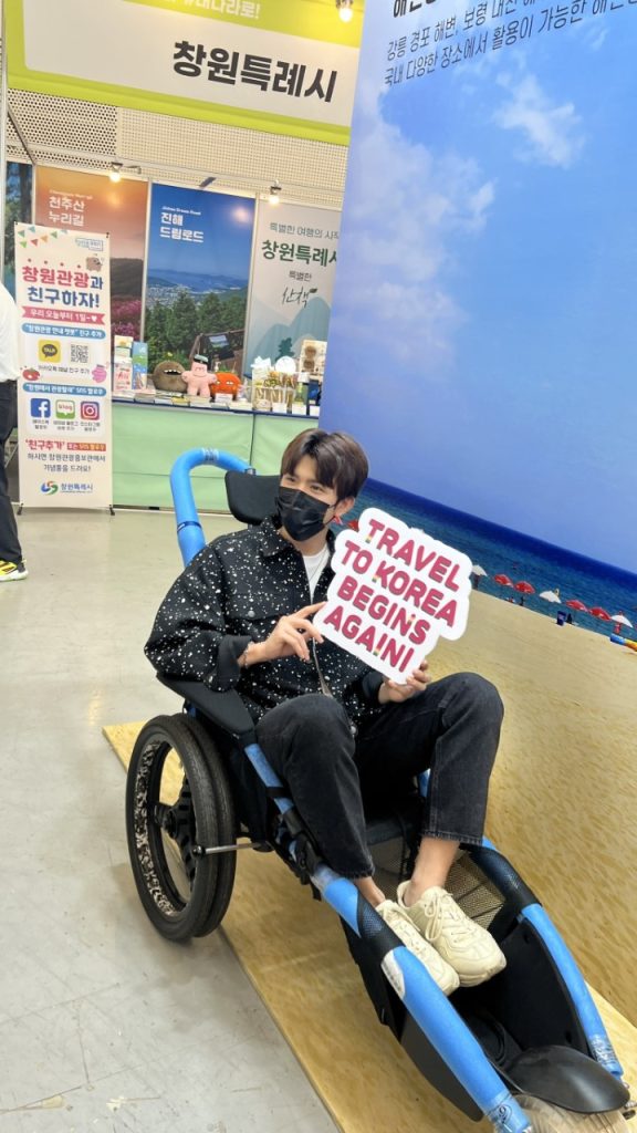 ซึ่งงานนี้ไม่เพียงหนุ่ม “เซฟ” จะเยี่ยมชมหลากหลายบูธ กระตุ้นเชิญชวนทุกคนมาท่องเที่ยวเกาหลีใต้ หลังพิษโควิด -19 ทำอุตสาหกรรมท่องเที่ยวหยุดชะงัก ยังให้ความสำคัญกับผู้พิการ โดยการร่วมกิจกรรมที่บูธส่งเสริมคนพิการ ที่มาพร้อมหลากหลายกิจกรรมให้หนุ่ม “เซฟ” และนักท่องเที่ยวได้มาร่วมสัมผัส ทั้งทำนามบัตรอักษรเบลล์เรียนรู้ภาษามือ นั่งรถเข็นคนพิการ รวมถึงเล่น VR จำลองสถานการณ์ของผู้พิการที่ท่องเที่ยวในเกาหลี เพื่อเข้าใจผู้พิการมากยิ่งขึ้น สอดคล้องกับนโยบายที่ว่าผู้พิการก็สามารถมาท่องเที่ยวเกาหลีได้ และหวังให้มีผู้เดินทางมาท่องเที่ยวกันเยอะๆ หลังเปิดประเทศในปีนี้