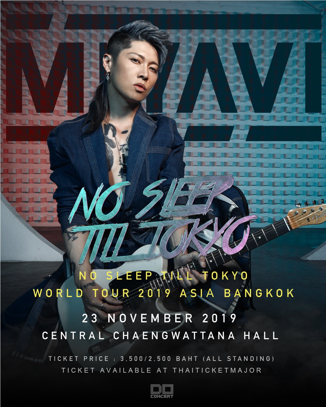 พลาดไม่ได้กับเวิลด์ทัวร์คอนเสิร์ตระดับตำนาน MIYAVI “NO SLEEP TILL TOKYO” World Tour 2019 ASIA Bangkok เปิดจำหน่ายบัตรวันเสาร์ที่ 17 สิงหาคม 2562 ทางไทยทิคเก็ตเมเจอร์ทุกสาขาหรือทางเว็บไซต์ www.thaiticketmajor.com บัตรราคา 3,500/ 2,500 บาท (บัตรยืนทั้งหมด) พิเศษเฉพาะบัตรราคา 3,500 บาทลุ้นรับโปสเตอร์พร้อมลายเซ็น จำนวน 100 ท่าน สามารถติดตามรายละเอียดเพิ่มเติมได้ที่ www.facebook.com/doconcert และทวิตเตอร์ @doconcert หรือแฮชแทค #MIYAVINOSLEEPTILLTOKYOBKK