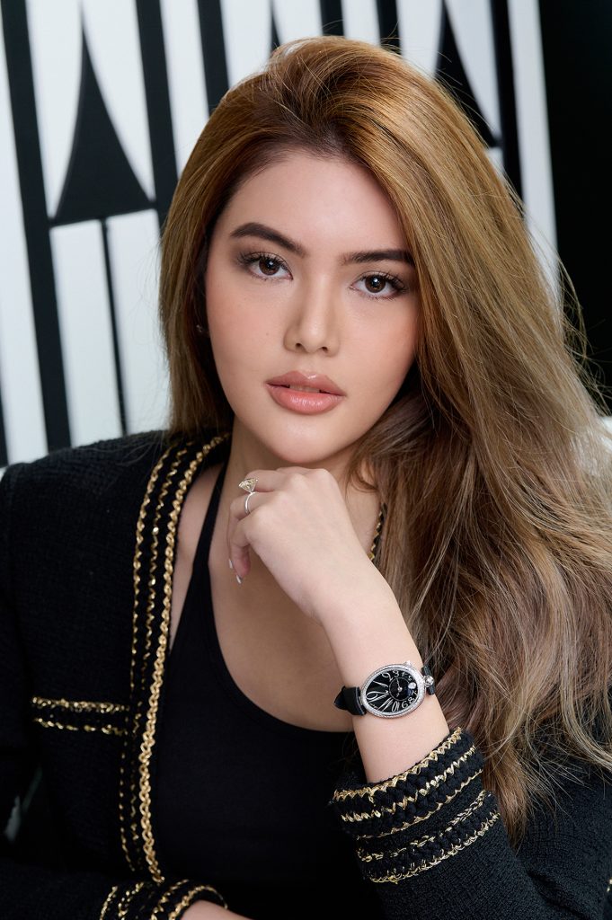 ปิดท้ายที่ ออย-นันทิสา แฟชั่นนิสต้าสาวสวย “ประทับใจนาฬิกาเรือนนี้คือมีดีไซน์ที่เป็นส่วนวงโค้งให้เข้ากับข้อมือของเราได้แบบพอดีมากๆ เพราะข้อมือเราเล็กมาก แล้วตกแต่งรอบๆ ด้วยเทคนิคเพชรทำให้นาฬิกาเรือนนี้มีดีเทลที่ทำให้มีความวาวมากขึ้น ดูหรูหรา แล้วออยเองเป็นคนชอบใส่ชุดเดรสเพราะฉะนั้นเวลาหานาฬิกาใส่ไปงานก็คือต้องใส่แบบที่ค่อนข้างเรียบและเหมาะกับชุดที่ต้องออกไปทั้งกลางวันและกลางคืนได้ เรือนนี้ก็ถือว่าตอบโจทย์ค่ะ ค่อนข้างมีความคลาสสิคแล้วตัวเรือนก็จะเป็นตัวไวท์โกลด์ ซึ่งตัวออยเองก็ผิวเข้ากับตัวไวท์โกลด์อยู่แล้วเพราะฉะนั้นก็จะทำให้ขับผิวเสริมความมั่นใจมากยิ่งขึ้นค่ะ แล้วยังแมตซ์เข้ากับชุดหวานหรือเท่ก็เก๋ไม่เบาเลยค่ะ”
