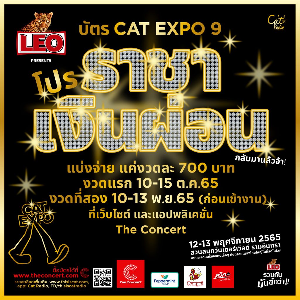 ข่าวดีสุดๆ บัตร Cat Expo 9 ผ่อนได้! กับโปรราชาเงินผ่อน สามารถแบ่งจ่ายแค่งวดละ 700 บาท ! โดยชำระงวดแรก 10 – 15 ต.ค. 65 และชำระงวดที่สอง 10 – 13 พ.ย. 65 (ก่อนเข้างาน) ได้ที่เว็บไซต์ และแอปพลิเคชั่น The Concert บอกเลย…โปรนี้ หมดคือหมด! และผู้ที่ซื้อบัตรแบบผ่อน ต้องมี QR Code E-Ticket ทั้งหมด 2 งวด จึงสามารถเข้างานได้ ! กรณีที่ชำระงวดแรกแล้ว ไม่ชำระงวดที่ 2 ตามกำหนด สงวนสิทธิ์ไม่คืนเงิน ! ส่วนผู้ที่ต้องการชำระเต็มจำนวนรวดเดียว ราคาพิเศษสำหรับวันที่ 10-15 ต.ค. 65 คือ 1,400 บาท ! หลังจากนั้นหากบัตรยังมี จะเปิดจำหน่ายในราคาเต็ม 1,600 บาท…รีบ ๆ กันซะ โปรดีมีไม่มาเยอะนะจ๊ะ