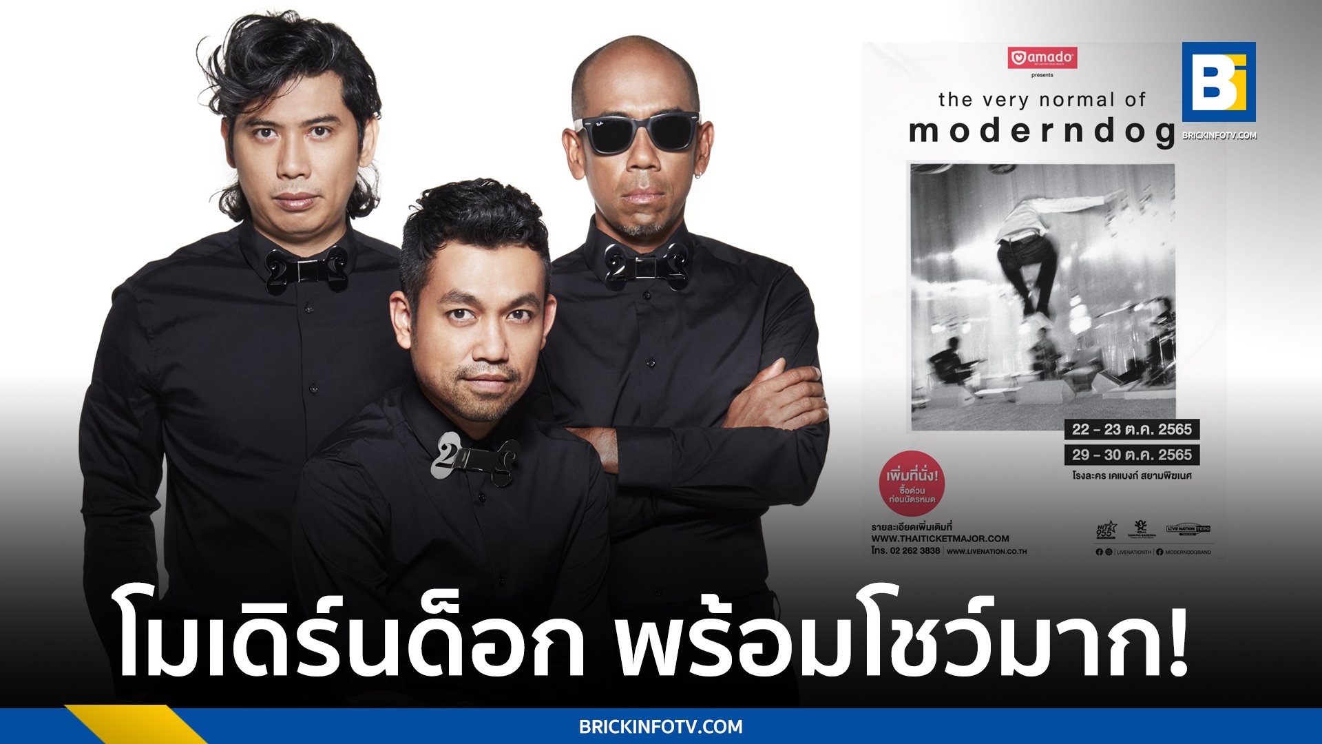 แฟนเพลงหมาทันสมัยห้ามพลาด! กับคอนเสิร์ตสุดพิเศษ ที่ทุกคนจะได้ดื่มด่ำกับเสียงดนตรีในแบบ อะคูสติก ที่ไม่ได้มีให้ชมกันบ่อยๆ ของ โมเดิร์นด็อก วงอัลเทอร์เนทีฟร็อกในตำนาน กับคอนเสิร์ต “อมาโด้ พรีเซ้นท์ส เดอะ เวรี่ นอร์มอล ออฟ โมเดิร์นด็อก” (Amado Presents The Very Normal of Moderndog) ในวันที่ 22-23 และ 29-30 ตุลาคมนี้ ที่โรงละคร เคแบงก์ สยามพิฆเนศ บัตรเข้าชมราคา 1,800 และ 2,800 บาท ใครที่ยังไม่มีบัตรสามารถซื้อได้ที่ไทยทิคเก็ตเมเจอร์ทุกสาขา หรือ www.thaiticketmajor.com สอบถามรายละเอียดเพิ่มเติม โทร. 0 2262 3838