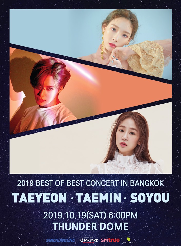 แฟน ๆ ชาวไทยเตรียมตัวพบกับคอนเสิร์ตที่จะรวมสุดยอดศิลปินระดับเทพแห่งวงการเคป็อบ กับงาน <2019 BEST OF BEST CONCERT IN BANGKOK> ซึ่งงานนี้จะได้พบกับโวคอล ควีนจากประเทศเกาหลีอย่าง “แทยอน” (TAEYEON) เกิร์ลส์ เจเนอเรชั่น (Girls’ Generation), แดนซ์ซิ่งคิง “แทมิน” (TAEMIN) ชายนี่ (SHINee) และสาวเสียงแหบเจ้าเสน่ห์ “โซยู” (SOYOU) ซิสตาร์ (SISTAR) โดยจะจัดขึ้นในวันเสาร์ที่ 19 ตุลาคม 2562 ณ ธันเดอร์โดม เมืองทองธานี