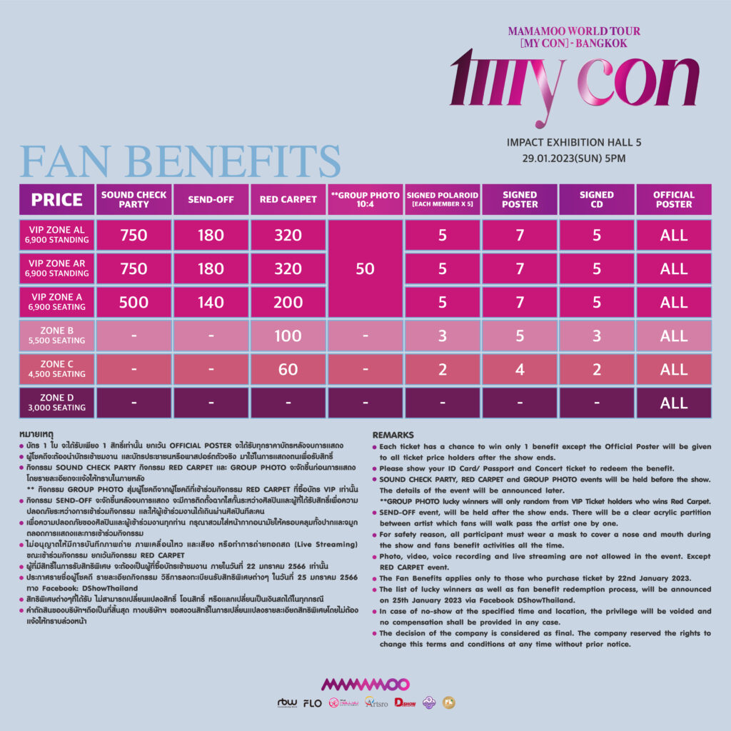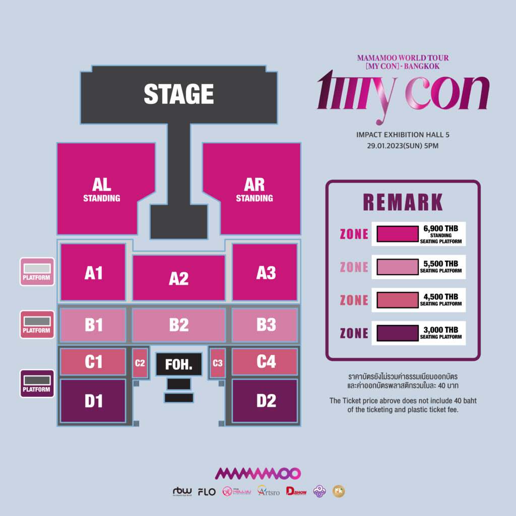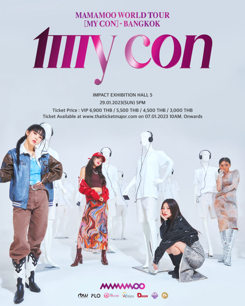 งานนี้ D-SHOW THAILAND และ KOKO CONNECTION ก็ไม่พลาดที่จะพาทั้ง 4 สาวมาเจอกับ MOOMOO (มูมู่ชื่อแฟนคลับ) ชาวไทยกับคอนเสิร์ตเต็มรูปแบบครั้งแรกอัดแน่น กว่า 2 ชั่วโมง ใน MAMAMOO WORLD TOUR [MY CON] – BANGKOK ในวันอาทิตย์ที่ 29 มกราคม 2566 ณ Impact Exhibition Hall 5 โดยเปิดจองบัตรพร้อมกัน ในวันเสาร์ที่ 7 มกราคม 2566 เวลา 10.00 น. ที่ ไทยทิคเก็ตเมเจอร์ ทั้งออนไลน์ และหน้าเคาน์เตอร์ทุกสาขา Call Center โทร 02-2623456 บัตรราคา VIP 6,900 บาท/ 5,500 บาท / 4,500 บาท และ 3,000 บาท พร้อมสิทธิพิเศษจาก MAMAMOO จัดเต็มให้ MOOMOO ชาวไทยอย่างแน่นอน ติดตามรายละเอียดเพิ่มเติมได้ทาง Facebook และ Twitter @DshowThailand @KOKOConnection เตรียมล้างหูมารอฟังพลังเสียงของสาวๆ กันได้เลย!!
