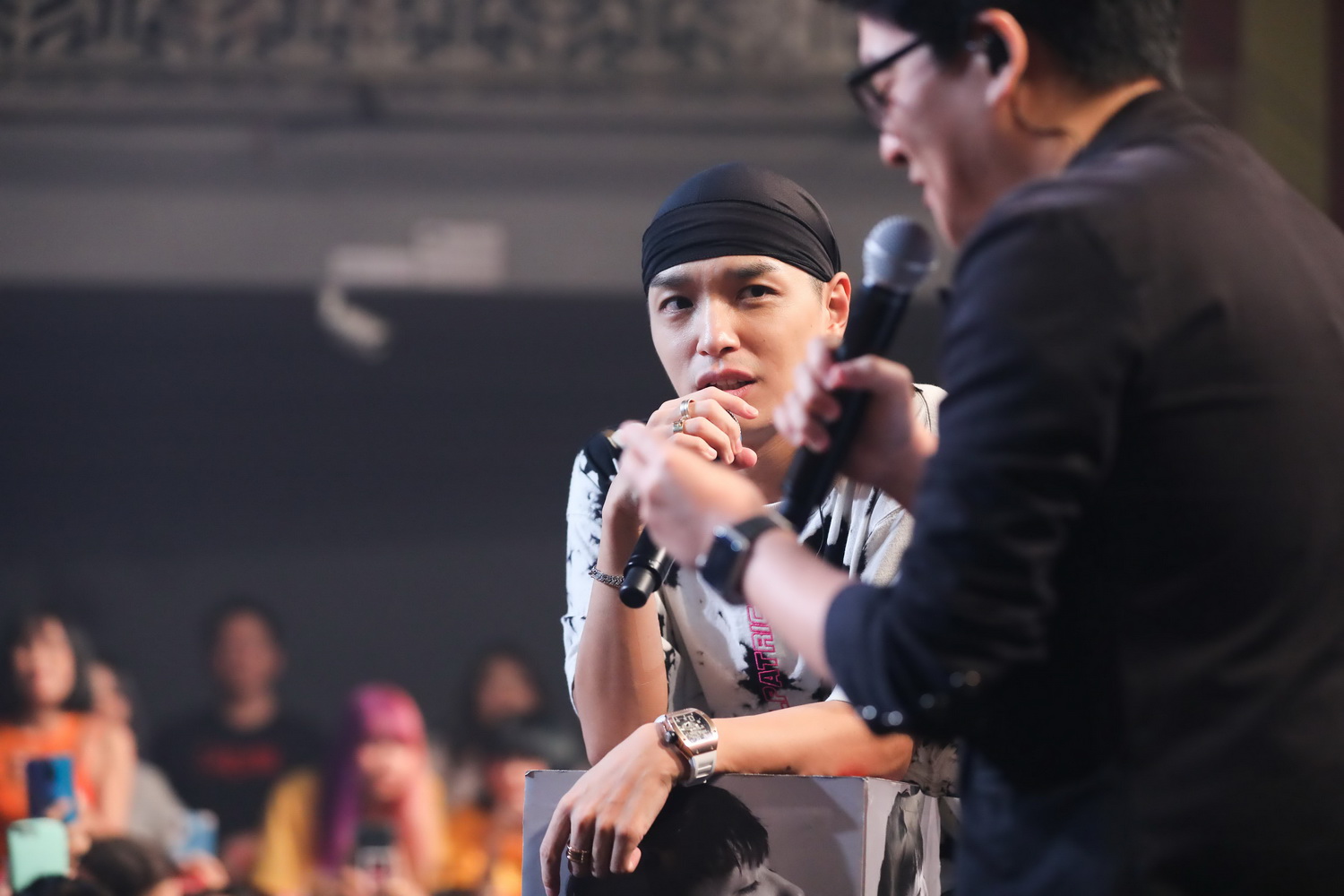 ก่อนพาเข้าช่วงถามตอบ แถมถูกใจคำถามไหนก็จะให้แฟนคลับที่ถามขึ้นมาถ่ายรูปเซลฟี่ด้วยกันบนเวที เริ่มด้วยคำถามแรก “อยากเห็นโอป้าบีทบ๊อกซ์ค่ะ” โอป้าก็จัดให้พอหอมปากหอมคอ คำถามต่อมา “ความลับสุดยอดคือ?” ไซม่อนไม่รู้จะตอบยังไง เลยเชิญขึ้นมาเซลฟี่ด้านหน้าเวทีไปเลย แต่ไม่วายแก้ตัวว่า “ผมไม่ได้มีความลับอะไร ก็เลยตอบไม่ได้” คำถามที่สามนี่อารมณ์ประมาณ “ไก่กับไข่ อะไรเกิดก่อนกัน?” พี่ไซม่อนปวดหัว จึงเรียกขึ้นมาถ่ายรูปกันซะเลย คำถามต่อมา “ใส่รองเท้าไซส์อะไร?” ตอบทันทีว่า “270 US” มาถึงคำถามเด็ด “ในเพลง Make Her Dance หา ‘Her’ ของโอป้าเจอหรือยัง?” เจ้าตัวตอบว่า “ก็นี่ไงครับ ทั้งฮอลล์เลย!” (แฟนกรี๊ดดด!!!)