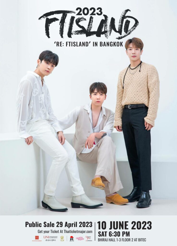 FTISLAND วงดนตรีป็อป-ร็อคสัญชาติเกาหลีที่เดบิวต์มามากกว่า 15 ปีแล้ว พวกเขาสร้างสมประสบการณ์มากมาย ไม่เพียงแค่ทางด้านงานเพลง แต่รวมถึงงานในวงการบันเทิงมากมายไม่ว่าจะเป็น ละคร พิธีกร ละครเวที ดีเจ หรือวาไรตี้ พวกเขามีเพลงฮิตที่ทุกวันนี้เรายังสามารถร้องตามกันได้สุดเสียงมากมายอย่าง Severely, I Hope, Love Sick, I Wish, Hello Hello, Bad Woman, Missing You และ After Love ความเป็น Entertainer ของพวกเขาทำให้ในทุกๆ คอนเสิร์ตสร้างความประทับใจให้กับผู้คนที่ได้ไปดูทุกครั้ง คอนเสิร์ตของ FTISLAND จึงเป็นคอนเสิร์ตที่คุณควรดูสักครั้งในชีวิต หลังจากที่พวกเขาห่างหายจากคอนเสิร์ตที่เมืองไทยมากว่า 5 ปี พวกเขาทั้ง 3 อีฮงกิ,อีแจจินและชเว มินฮวาน ก็ปักหมุดกลับมาพบเจอกับพรีมาดอนน่าชาวไทยอีกครั้ง โดยหลังจากที่พวกเขาปล่อยมิวสิควิดีโอเพลง DOOR ซึ่งเป็นเพลงซิงเกิลที่ 19 ของฝั่งญี่ปุ่น พวกเขาก็เดินสายทัวร์คอนเสิร์ตที่ประเทศญี่ปุ่นภายใต้ชื่อ ‘FTISLAND Autumn Tour 2022 – Door‘ ทันที แต่พวกเขาไม่ยอมปล่อยให้พรีมาดอนน่าที่ประเทศอื่นต้องรอคอนเสิร์ตใหญ่นาน พร้อมประกาศทัวร์คอนเสิร์ตในประเทศอื่นเพิ่มเติมขึ้นทันที โดยทัวร์คอนเสิร์ตครั้งนี้จะเริ่มที่ไทเป ต่อด้วย มาเก๊าและแน่นอนที่ประเทศไทย