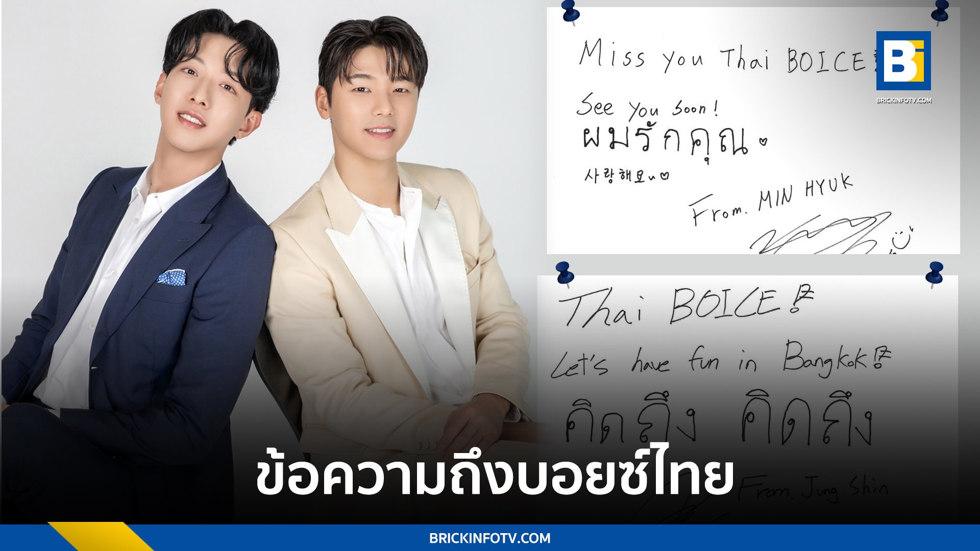 “คัง มินฮยอก” และ “อี จองชิน” ตื่นเต้นกว่าใคร เขียนข้อความถึงบอยซ์ไทยว่า ‘คิดถึง’! จองบัตรให้ไว 22 เมษายนนี้