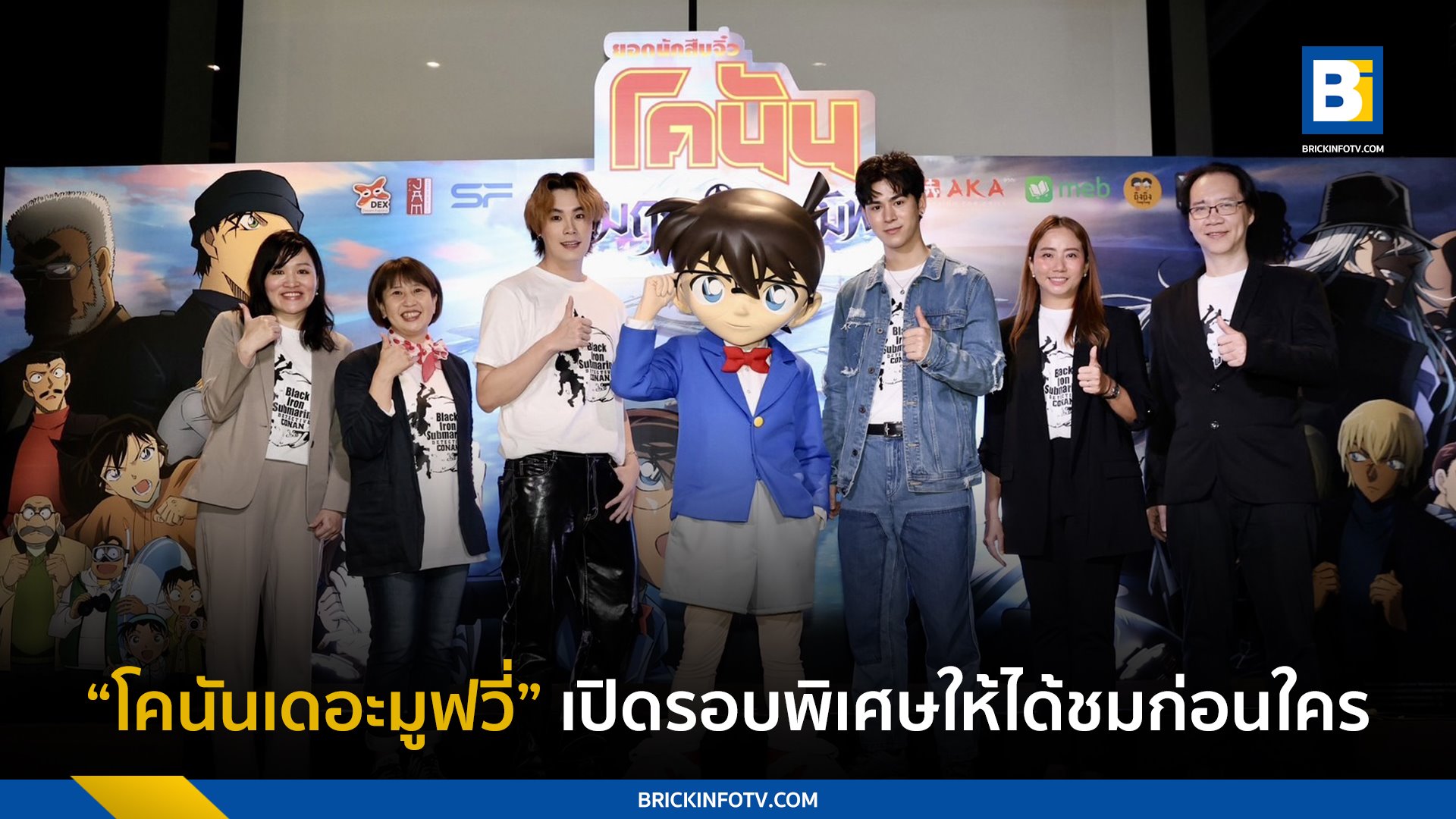 สุดยอดภาพยนตร์อนิเมะแนวสืบสวน ก่อนจะเข้าฉายจริง 26 เม.ย. 66 นี้ ภายในงานได้รับเกียรติจาก คุณกวิน โรจน์รัตนวาณิชย์ ผู้จัดการสายงานดิจิทัล บริษัท เดกซ์ (ดรีม เอกซ์เพรส) (ที่ 7 จากซ้าย) และคุณพิชชาภา ณรงค์พันธ์ ผู้บริหาร เจแปน อนิเมะ มูฟวี่ไทยแลนด์ (ที่ 6 จากซ้าย) พร้อมด้วย คุณปอย-กฤษณพงศ์ สุนทรชัชเวช (ที่ 3 จากซ้าย) คุณคูเปอร์-ภัทรสิษฐ์ ณ สงขลา (ที่ 5 จากซ้าย) และตัวการ์ตูนมาสคอต “โคนัน” ที่มาร่วมสร้างสีสันภายในงาน ณ สกาย ล็อบบี้ ชั้น 8 โรงภาพยนตร์ เอส เอฟ เวิลด์ ซีเนม่า ศูนย์การค้าเซ็นทรัลเวิลด์ วันนี้