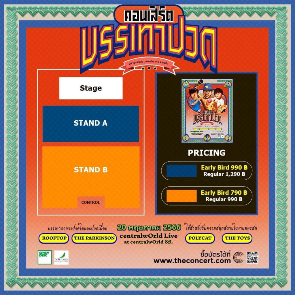 เรียกได้ว่าเป็นอีกหนึ่งคอนเสิร์ตดี ๆ ที่ทุกคนไม่ควรพลาด เปิดจำหน่ายบัตรแล้ว ตั้งแต่วันที่ 4 พฤษภาคมนี้เป็นต้นไป ราคาบัตร STAND A ในราคาเพียง 1,290 บาท และบัตร STAND B ในราคาเพียง 990 บาท เท่านั้น! รีบพุ่งเข้าไปกดซื้อบัตรได้ทาง https://www.theconcert.com/ หรือ Application The Concert หากมีข้อสงสัยสามารถสอบถามข้อมูลอื่นๆ เพิ่มเติมได้ที่ www.facebook.com/Spicydiscrecord หรือทาง https://www.facebook.com/spicyevent.official เตรียมตัวให้พร้อมมาระบายความเจ็บปวดไปด้วยกัน!