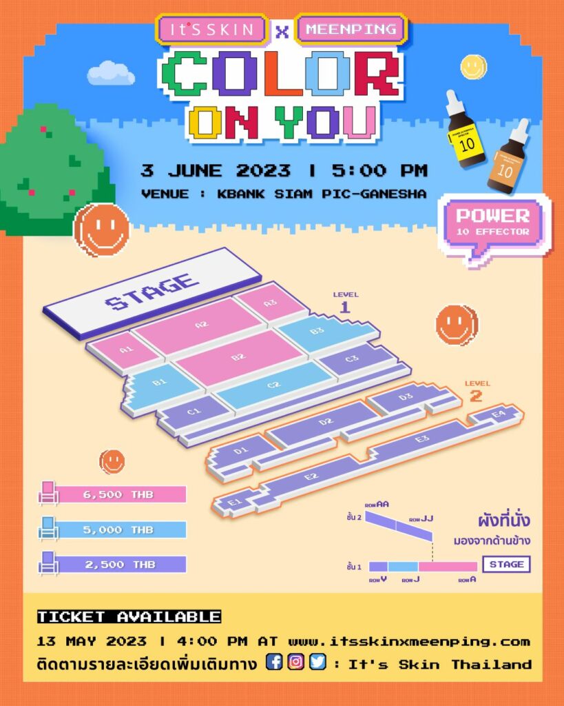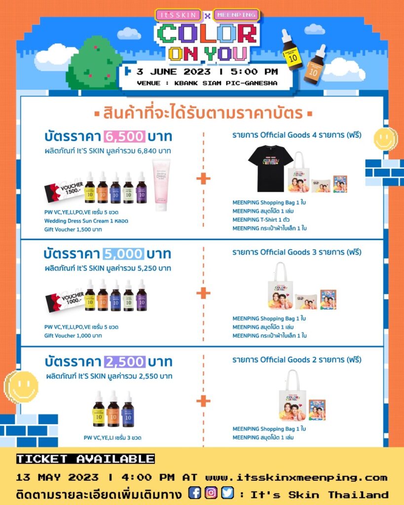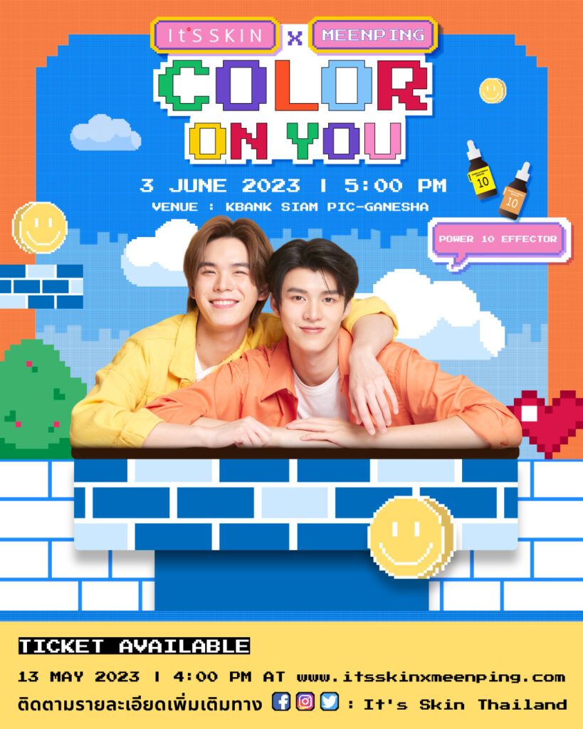 It’S SKIN x MeenPing Color on You ครั้งแรกกับความสนุก จาก 2 หนุ่ม Meen Ping ที่อยากชวนทุกคนมาสนุก ซน และฟิน ไปกับพวกเขาในรูปแบบสุด EXCLUSIVE! กับงาน It’S SKIN x MeenPing Color on You วันเสาร์ที่ 3 มิถุนายน 2566 ที่ KBANK SIAM PIC GANESHA เวลา 17.00 น.