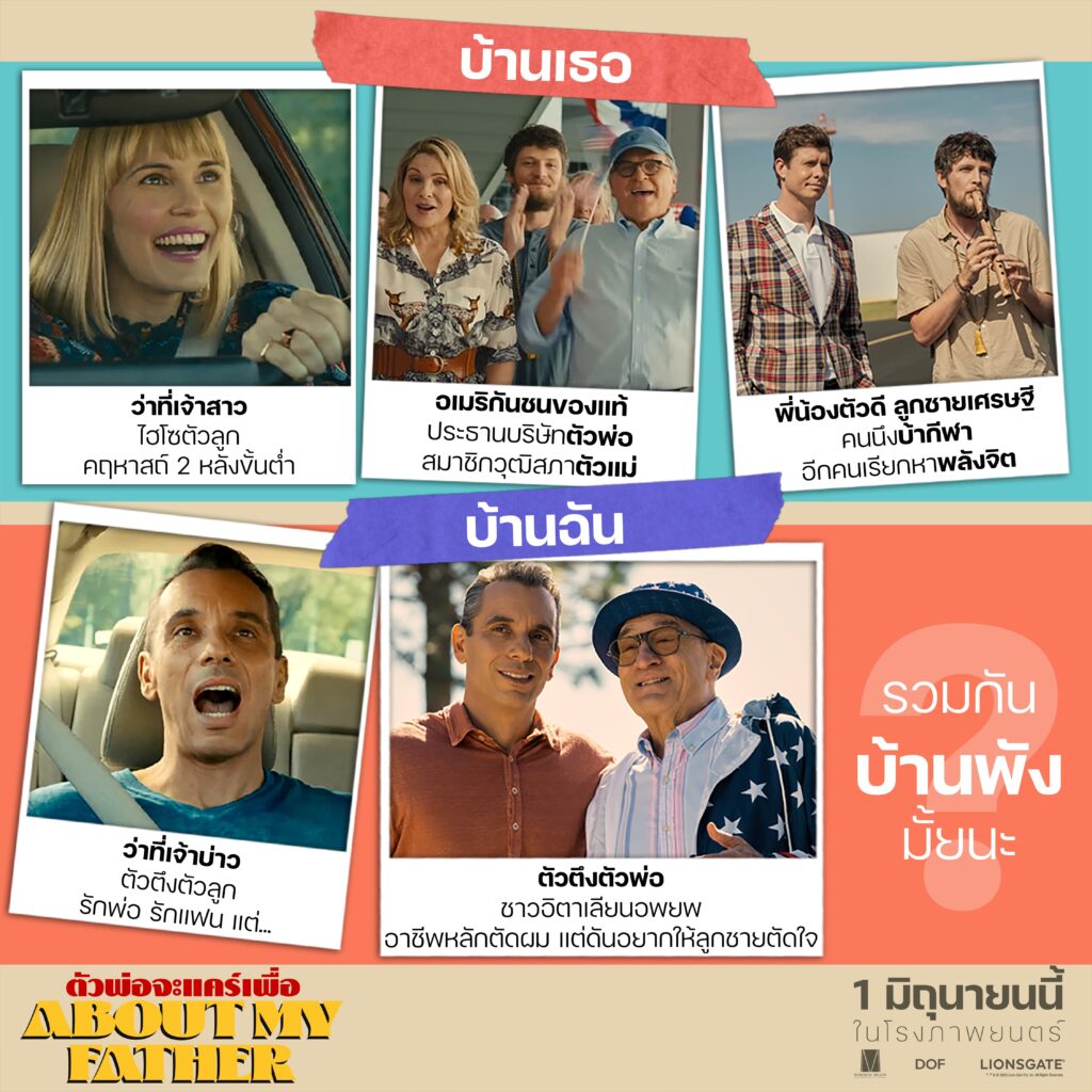 เปิดเดือนมิถุนายนด้วยเสียงฮาลั่นจอกับ “About My Father ตัวพ่อจะแคร์เพื่อ” ภาพยนตร์คอมเมดี้เต็งหนึ่งรับหน้าร้อนที่คอหนังอารมณ์ดีทุกคนไม่ควรพลาด การโคจรมาพบกันของ 2 ครอบครัวที่แตกต่างกันอย่างสุดขั้วกับเรื่องราววายวุ่นของ คุณพ่ออิตาเลียนสุดป่วน และลูกชายที่ต้องร่วมทริปกระชับสัมพันธ์สุดหรรษากับครอบครัวลูกสะใภ้ไฮโซอเมริกัน วีรกรรมสุดปั่นที่ทั้งรั่วทั้งฮาจึงเริ่มขึ้น