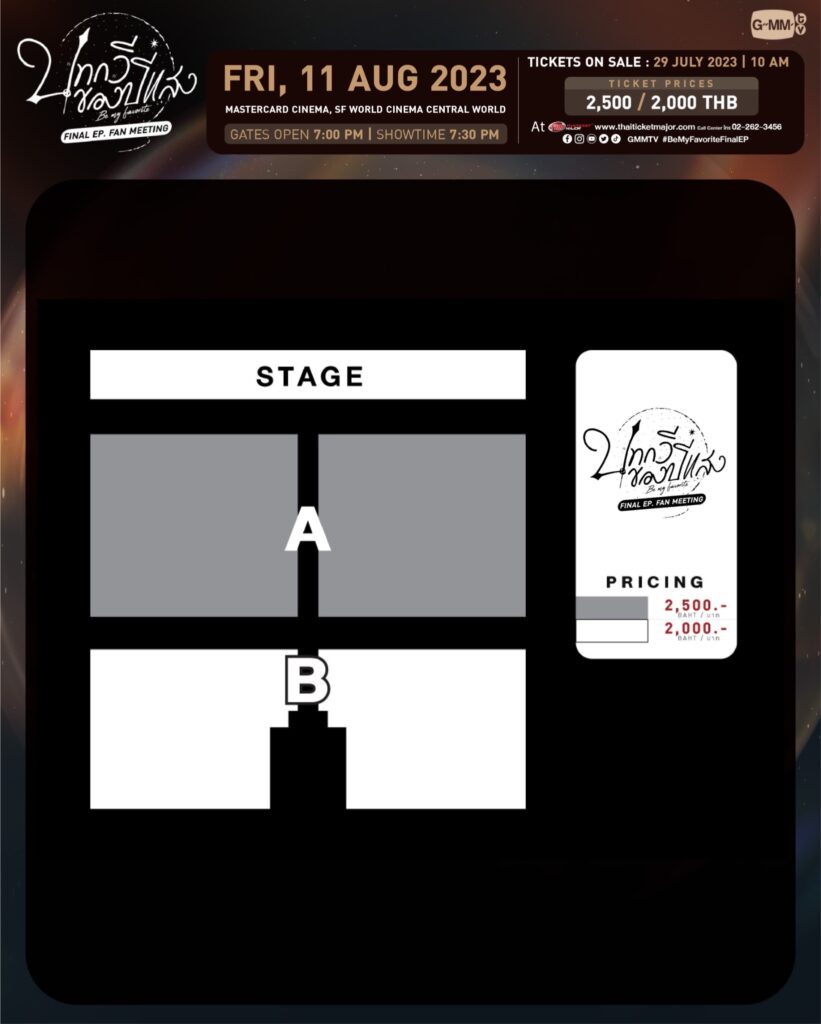 สำหรับผู้ที่สนใจสามารถจองบัตรเข้าร่วมงาน “Be My Favorite Final EP. FAN MEETING” โดยเปิดจำหน่ายบัตรในวันเสาร์ที่ 29 กรกฎาคมนี้ เวลา 10.00น. เป็นต้นไป บัตรราคา 2,500 / 2,000 บาท ที่ ไทยทิคเก็ตเมเจอร์ทุกสาขา www.thaiticketmajor.com และ Call Center โทร 0-2262-3456 ติดตามรายละเอียดเพิ่มเติมได้ที่ เว็บไซต์ : www.thaiticketmajor.com Facebook : www.facebook.com/gmmtvofficial และ Instagram & Twitter & Tiktok & YouTube & Weibo : GMMTV