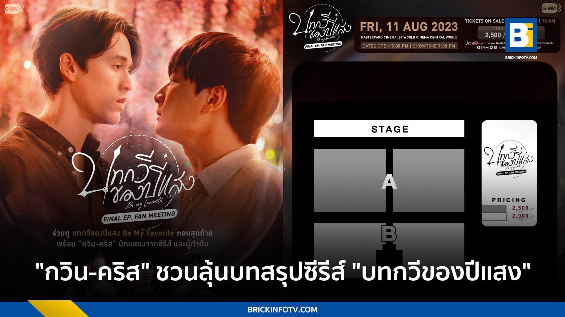 ด้วยความเคมีเคใจฟินเวอร์ของคู่นักแสดงสุดฮอต “คริส พีรวัส แสงโพธิรัตน์” กับ “กวิน แคสกี้” ที่พาใจคนดูอินเลิฟในทุกห้วงอารมณ์กับทุกตอนที่ออกอากาศของซีรีส์โรแมนติกดราม่า “บทกวีของปีแสง Be My Favorite” จาก “GMMTV” ซึ่งเป็นการถ่ายทอดเรื่องราวของชายหนุ่มผู้โดดเดี่ยวที่ได้รับโอกาสให้ย้อนเวลากลับไปแก้ไขอดีตอีกครั้ง แต่ทำอย่างไรเธอผู้นั้นก็ไม่มีทางเป็นของเขาอยู่ดี ซึ่งตรงกันข้ามกับคนที่ใช่ ทุกอย่างเปลี่ยนไปยังไง เขาก็เป็นของเราอยู่ดี โดยล่าสุดเนื้อเรื่องก็กำลังเดินทางมาถึงโค้งสุดท้าย งานนี้ทั้งคู่เลยขอยก ก๊วนทีมนักแสดง “อ้าย สรัลชนา อภิสมัยมงคล, อู๋ ธนบูรณ์ เกียรตินิรันดร, ไตเติ้ล กีรติ พวงมาลี” ชวนแฟนๆ มาลุ้นเส้นทางความรักของ “บทกวี-ปีแสง” จะลงเอยอย่างไร และบทสรุปความสัมพันธ์ของทุกตัวละครใครจะอยู่ในสเตตัสไหนไปพร้อมกัน กับงาน “Be My Favorite Final EP. FAN MEETING” ในวันศุกร์ที่ 11 สิงหาคม 2566 เวลา 17.00น. เป็นต้นไป ณ MASTERCARD CINEMA, SF WORLD CINEMA CENTRAL WORLD เตรียมพบกับโชว์สุดเอ็กคลูซีฟที่จะทำให้คุณต้องว้าว!! พร้อมกับการสัมภาษณ์พิเศษที่จะเสิร์ฟโมเมนต์แบบเกินร้อย รับรองความสนุกเอ็นจอยที่ยกกำลังความฟินขั้นสุดอย่างแน่นอน