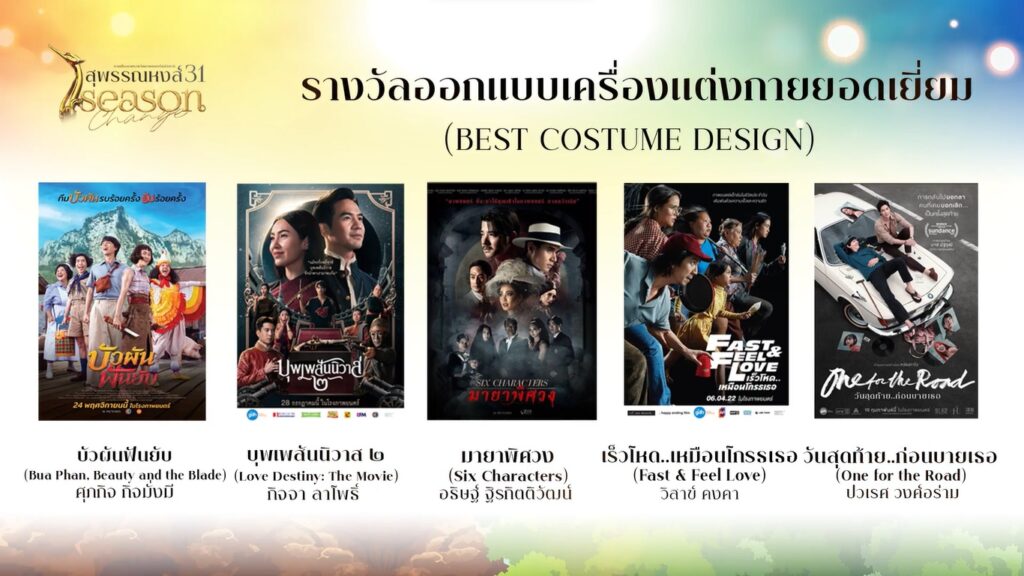 เปิดโผ “สุพรรณหงส์ครั้งที่ 31 ประจำปี 2565…Season Change” บุพเพสันนิวาส 2 วันสุดท้ายก่อนบายเธอ มาแรงเข้าชิง 12 รางวัล