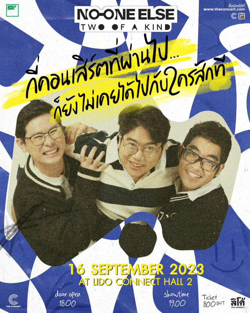 โดยคอนเสิร์ตจะมีขึ้นในวันเสาร์ ที่ 16 กันยายน 2566 Lido Connect Hall 2 ประตูเปิดเวลา 18.00 น. บัตรราคา 800 บาท เปิดให้จำจองได้ตั้งแต่วันเสาร์ที่ 12 สิงหาคม 2566 ตั้งแต่ 10.00 น. เป็นต้นไป ที่ www.theconcert.com/concerts/nooneelse-twoofakind พิเศษสุดๆ สำหรับผู้ที่ซื้อบัตร 50 คนแรกจะได้รับสิทธิ์ Meet and Greet หลังจบโชว์ แล้วมาจอยไปด้วยกัน