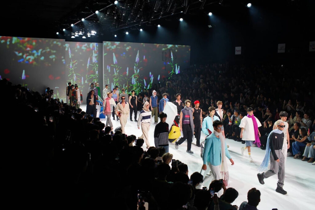 จากแบรนด์ “NAGARA” ที่ยังคงสร้างสรรค์แฟชั่นโชว์ได้อย่างน่าตื่นตาตื่นใจ โดยคอลเลคชั่นใหม่ล่าสุดนี้มีความพิเศษที่ลายผ้าจากการมัดย้อมด้วยเทคนิคดั้งเดิมแบบญี่ปุ่น รวมถึงการจับคู่สีและลวดลายที่ดูราวกับการประชันความงามของมวลดอกไม้บนชุดเสื้อผ้าที่ออกแบบให้สวมใส่สบาย พลิ้วไหว และยังคงไว้ซึ่งเอกลักษณ์ของผ้าไหมไทยอันเป็น ดีเอ็นเอของแบรนด์ มาในแฟชั่นโชว์ที่ตระการตา ทั้งยังยกขบวนซูเปอร์โมเดลอย่าง อุ๋ม-อาภาศิริ นิติพน, ลูกเกด-เมทินี กิ่งโพยม, แพนเค้ก-เขมนิจ จามิกรณ์ พร้อมเหล่านักแสดงและศิลปินระดับท็อป อาทิ หน่อยบุษกร วงศ์พัวพันธ์ และลูกชาย น้องคุณ-น้องจุน, เป๊ก-ผลิตโชค อายนบุตร, เจษ-เจษฎ์พิพัฒ ติละพรพัฒน์, รัศมีแข ฟ้าเกื้อล้น และ แอนโทเนีย โพซิ้ว Miss Universe Thailand ปีล่าสุด มาร่วมอวดโฉมรันเวย์อย่างคับคั่ง