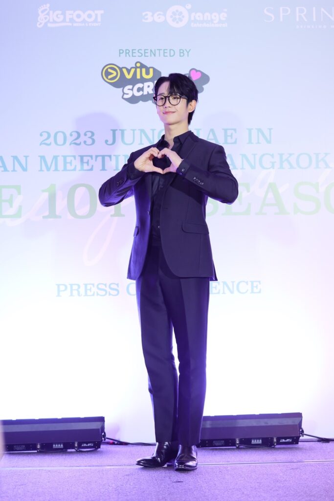 ภายในงานแถลงข่าว “จองแฮอิน” (Jung Hae In) ปรากฏตัวในชุดสูทสีดำสุดคูลพร้อมรอยยิ้มสดใส เขาเผยความรู้สึกสำหรับงานในครั้งนี้ว่า “ผมอยากเจอแฟนชาวไทยมากๆยิ่งเป็นแฟนมีตติ้งที่ตื่นเต้นมาก ผมจะทำให้ดีเพื่อให้แฟนมีตติ้งครั้งนี้สนุกและน่าจดจำ ทุกคนมาดูกันเยอะๆ นะครับ”