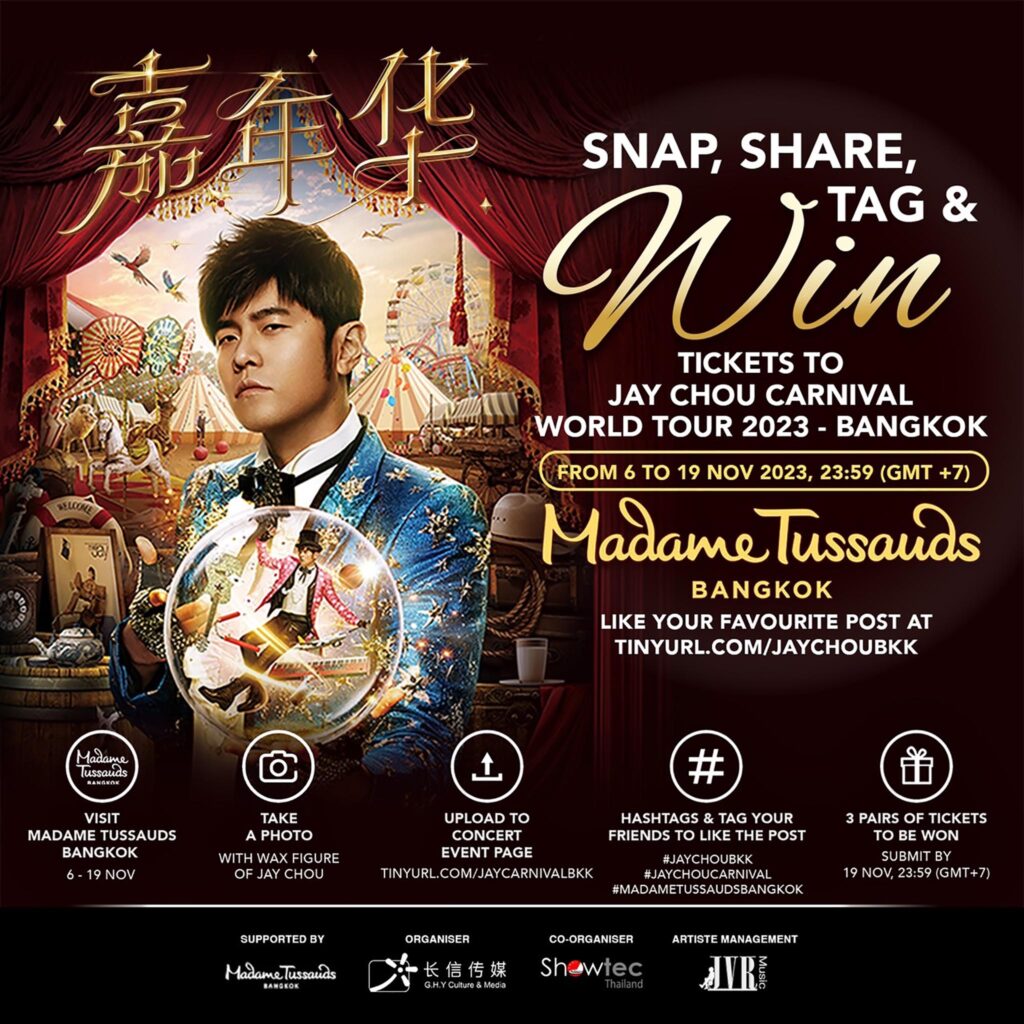 โอกาสมาถึงแล้ว! ถ่ายรูปคู่ “เจย์ โจว” ที่มาดามทุสโซลุ้นรับบัตรคอนเสิร์ตแห่งปี Jay Chou Carnival World Tour 2023 กรุงเทพ