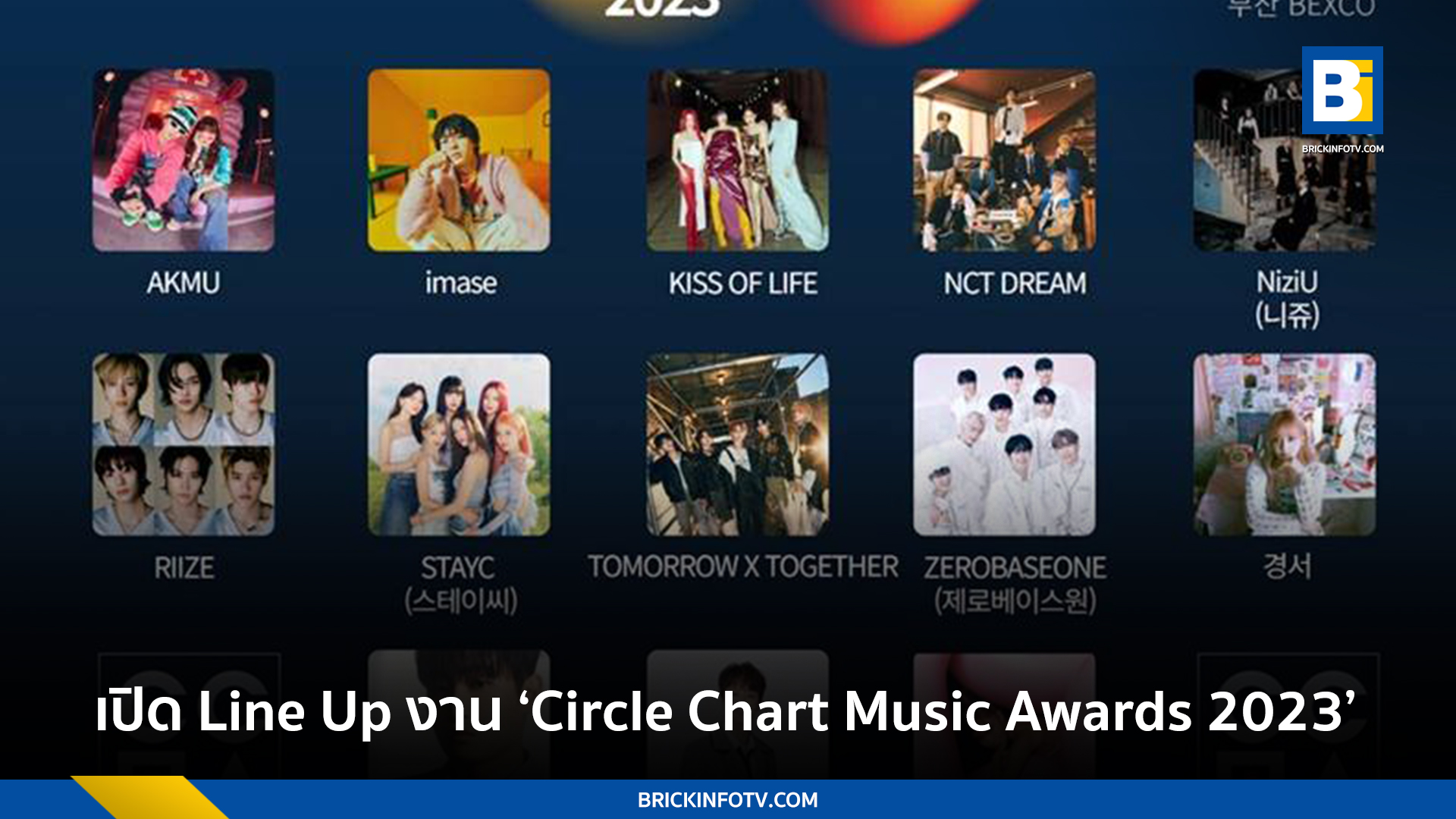 เปิด Line Up งาน Circle Chart Music Awards 2023 สนับสนุนโดย Circle Chart Music Awards Secretariat พร้อมแล้วที่จะเข้าหาแฟนๆ ทั่วโลกผ่านช่องทางออนไลน์ โดยงานจะจัดขึ้นที่ BEXCO, Busan ในวันที่ 10 มกราคม 2567 เวลา 19.00 (KST) แฟนๆทั่วโลก (ยกเว้น เกาหลี, ญี่ปุ่น, ประเทศฝั่งตะวันออกกลาง ) สามารถรับชมได้ผ่านช่องทาง WishYou TV (www.wishyou.tv), VIAJE Korea’s OTT platform