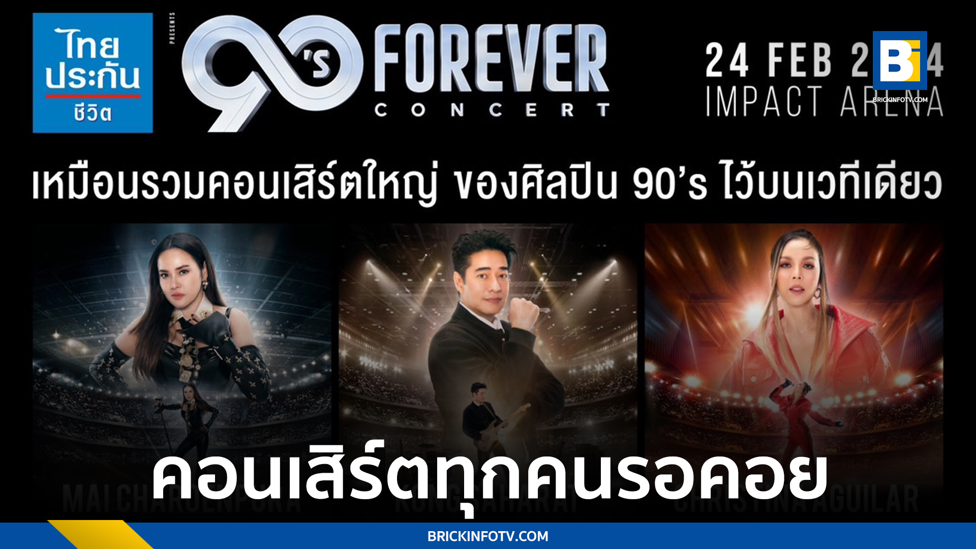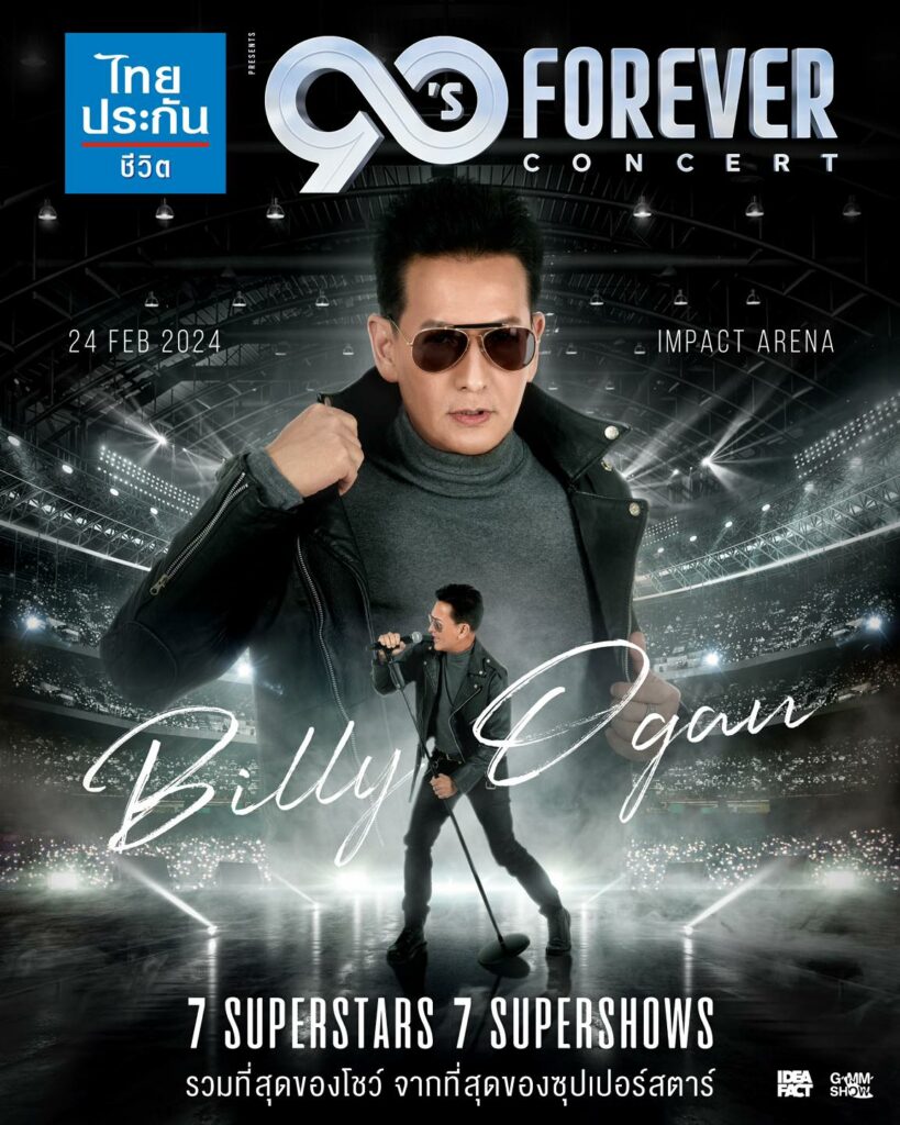 ทุกเพลงที่อยากร้องอยากฟังสาวกยุค 90’s ห้ามพลาด!! เพราะคุณจะได้พบกับสุดยอดโชว์จากที่สุดของซุปเปอร์สตาร์ “ไทยประกันชีวิต presents 90’s FOREVER CONCERT” จัดขึ้นในวันเสาร์ที่ 24 กุมภาพันธ์ 2567 ณ อิมแพ็ค อารีน่า เมืองทองธานี ราคาบัตร : 5,500 / 5,000 / 4,500 / 4,000 / 3,000 / 2,500 / 2,000 เตรียมกดบัตรให้ทัน!! พลาดแล้วจะเสียใจ!! เปิดจำหน่ายบัตรวันเสาร์ที่ วันที่ 27 มกราคม 2567 เวลา 10.00 น. เป็นต้นไป ที่ไทยทิคเก็ตเมเจอร์ทุกสาขา และ http://www.thaiticketmajor.com หรือโทร 02-262-3456 และสามารถติดตามรายละเอียดเพิ่มเติมได้ที่ FB และ IG : 90s2000sconcerts