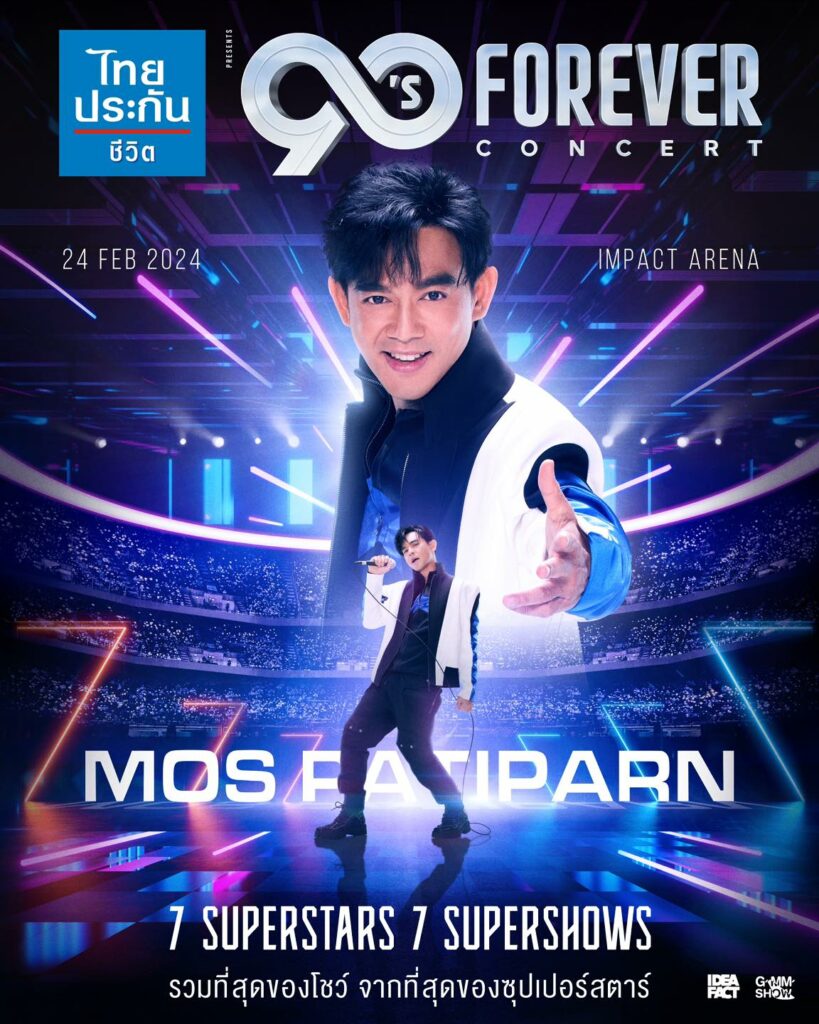 พร้อมสร้างตำนานกันตั้งแต่ต้นปีหลังจากที่ทาง Facebook เพจคอนเสิร์ต: 90’s – 2000’s Concerts ได้ทยอยปล่อย ภาพศิลปิน ยุค 90’s ที่จะมาขึ้นคอนเสิร์ตในครั้งนี้ เพื่อโปรโมทออกมาเรียกน้ำย่อยแฟน ๆ อย่างต่อเนื่อง จนทำให้แฟนเพลงสาวกยุค 90’s ต่างใจจดใจจ่อตั้งตารอคอย การกลับมาของศิลปินที่เป็นระดับตำนานในดวงใจ ล่าสุดทางผู้จัดคอนเสิร์ต “GMM SHOW” พร้อมแล้วที่จะส่งความสนุกสุดมันส์ ที่ในครั้งนี้อาจเป็นครั้งแรกและครั้งเดียว ที่ศิลปินระดับตำนานทั้ง 7 คนจะมาอยู่บนเวทีเดียวกันใน “ไทยประกันชีวิต presents 90’s FOREVER CONCERT” จะจัดขึ้นในวันเสาร์ที่ 24 กุมภาพันธ์ 2567 ณ อิมแพ็ค อารีน่า เมืองทองธานี