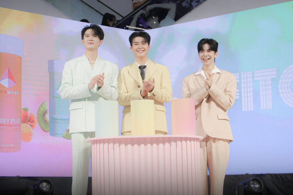 ในงานเริ่มต้นด้วยการปรากฏตัวของ CEO หนุ่มสุดหล่อ เซ้นต์ – ศุภพงษ์ และผู้บริหารอีก 2 ท่าน ได้แก่ คุณคเชนทร์ สดโพธิ์ และคุณแม่ พิรดา หัชลีฬหา จากนั้นเปิดตัว 2 พรีเซ็นเตอร์หนุ่มคู้จิ้นสุดฮอต บิลลี่เบ้บ ขึ้นมาบนเวที เรียกเสียงกรี๊ดสนั่นจากเหล่าแฟนคลับของทั้งคู่ ก่อนจะร่วมกันทำพิธีเปิดแบรนด์อย่างเป็นทางการ ร่วมพูดคุยบนเวทีเล่าถึงที่มาที่ไปของการทำผลิตภัณฑ์เสริมอาหารนี้รวมไปถึงถามถึงความรู้สึกของ 2 พรีเซ็นเตอร์สุดหล่อที่ได้รับเกียรติในครั้งนี้ ต่อด้วยแนะนำข้อดีของผลิตภัณฑ์ทั้ง 3 กลิ่น Fitoxy Plus กีวี่ กลิ่น ฟลุตพั้นซ์, Fitoxy Plus กลิ่น คอมบูชา ฮันนี่ เลม่อน และ Fitoxy Plus อาซาอิ กลิ่น พีช ก่อนจะปิดท้ายด้วยการฝากผลงานของทั้ง 3 คน และโชว์สุดพิเศษจากบิลลี่เบ้บ กับเพลง หยุดสายตา ทำเอาแฟนคลับฟินกลับบ้านกันไปเต็มอิ่ม โดย บิลลี่ – ภัทรชนน เป็นตัวแทนเปิดใจว่า “ผมรู้สึกตื่นต้นและดีใจมากครับที่เรา 2 คนได้เป็นพรีเซ็นเตอร์ และขอบคุณทั้งเซ้นต์ พี่เชน และแม่นุ๊ก ที่มั่นใจในตัวพวกเรา เลือกให้พวกเรามาเป็นส่วนหนึ่งของครอบครัวพิรามิสนะครับ ในงานมีคนมาให้กำลังใจเยอะมากเลย ก็ดีใจมากๆ ขอบคุณพี่ๆ แฟนคลับทุกคนนะครับที่มาหา มาให้กำลังใจพวกเราแบบนี้ มัน Made my day ของผมมากๆ ไม่คิดว่าจะมีคนรักพวกเรามากมายขนาดนี้ ขอบคุณที่คอยอยู่ข้างๆกัน คอยจับมือและเติมโตไปด้วยกัน สัญญาว่าจะทำผลงานดีๆ ออกมาให้ทุกคนได้ติดตามและชื่นชมไปเรื่อยๆ นะครับ และสุดท้ายอยากฝากพิรามิสไว้ในใจทุกคนด้วยนะครับ”