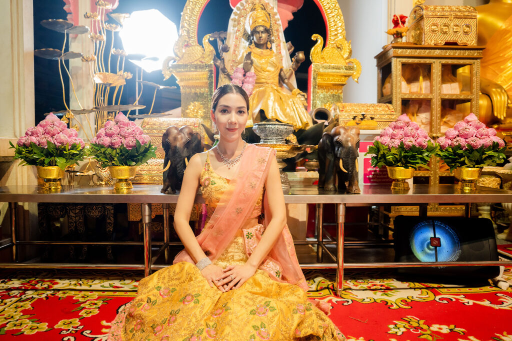 “ที่เลือกมารำถวายที่วัดนี้ คือพระแม่ลักษมี ที่วัดไผ่เงิน วุ้นสร้างมาประมาณ 1 ปีกว่าๆ แล้ว ปีที่แล้ววุ้นก็ได้มารำถวายรอบนึง ปีนี้เริ่มปีใหม่ก็ขอนิดนึง ก่อนวันวาเลนไทน์ด้วย เผื่อจะดีไปเรื่อยๆ ก็ขอเพิ่มค่ะ ขอตลอด คือจริงๆ เราทำงานเราทำธุรกิจเราก็ขอแหละ แต่ว่าอย่างที่พูดหลายรอบแล้วว่าเราไม่ได้ขอเงินอย่างเดียว