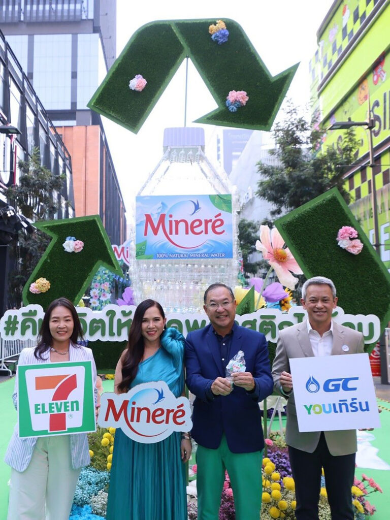 นอกจากนี้ มิเนเร่ยังได้สานต่อความร่วมมือกับเซเว่น อีเลฟเว่น และ GC YOUเทิร์น ดำเนินกิจกรรม “BOTTLE MADE FROM BOTTLES คืนชีวิตให้ขวดพลาสติกกับน้ำแร่มิเนเร่” เป็นปีที่ 2 เพื่อเก็บรวบรวมขวดพลาสติก PET ที่ใช้แล้วมารีไซเคิลผลิตเป็นขวด rPET ใหม่ คนรุ่นใหม่หัวใจสีเขียวสามารถร่วมนำขวดพลาสติกที่ใช้แล้วมาหย่อนลงถังขยะรีไซเคิลมิเนเร่ ได้ที่เซเว่น อีเลฟเว่น 100 สาขาทั่วกรุงเทพฯ ตั้งแต่วันนี้จนถึงสิ้นปี 2567