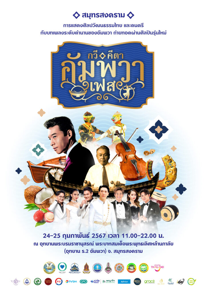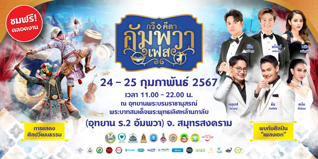 น้อมรำลึกถึงพระมหากรุณาธิคุณและวันคล้ายวันพระบรมราชสมภพ พระบาทสมเด็จพระพุทธเลิศหล้านภาลัย (รัชกาลที่ 2) มูลนิธิหนึ่งน้ำใจ และ จังหวัดสมุทรสงคราม จัดงาน “กวี คีตา อัมพวาเฟส” สัมผัสความสนุกในยุคทองของวรรณคดีไทย การันตรีด้วยCultural Carbon Neutral Event งานวัฒนธรรมที่ไม่ปล่อยมลพิษสู่โลก เริ่มวันที่ 24 – 25 กุมภาพันธ์ 2567 ณ อุทยานพระบรมราชานุสรณ์ (อุทยานร.2) อัมพวา ฟรี! ตลอดงาน