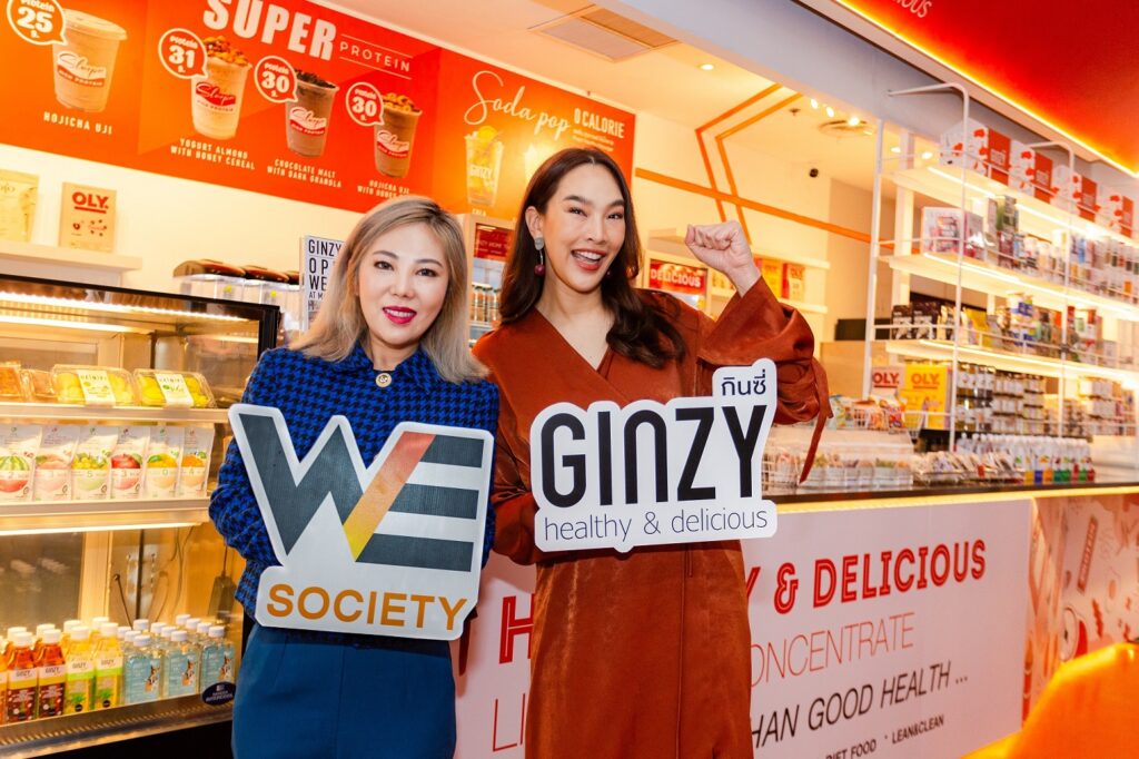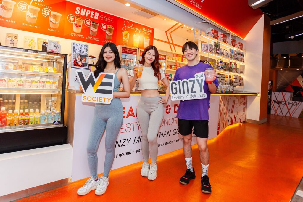 ด้าน ตุ๊ก ชนกวนัน รักชีพ และ กัญญาภัค แก้วจันทร์ กล่าวว่า ได้ร่วมกันเปิดร้าน GINZY (กินซี่) เริ่มต้นจากการที่เราต้องเลือกสินค้าที่ดีที่สุดเพื่อดูแลสุขภาพของตัวเราเองและเพื่อให้ครอบครัวรวมถึงคนที่เรารักได้ร่วมเป็นส่วนหนึ่งกับการมีสุขภาพที่ดีนี้จึงก่อกำเนิดเป็นไอเดียหลักในการเปิด “Ginzy Healthy & Delicious” เพื่อเชื่อมไลฟ์สไตล์ให้ทุกคนมีความสุขและสุขภาพดีไปด้วยกัน ซึ่งตรงกับคอนเซ็ปท์ของ วี โซไซตี้ ที่อยากดูแลลูกค้าทั้งโภชนาการและการออกกำลังกายไปพร้อมๆ กัน การเข้าไปเปิดสาขาในฟิตเนสจะทำให้เข้าถึงกลุ่มลูกค้าที่มีความมุ่งมั่นอยากดูแลสุขภาพอย่างแท้จริง เพราะสินค้าหลักของ Ginzy คือ อาหาร ขนม และเครื่องดื่มเพื่อสุขภาพ ไม่มีน้ำตาล แคลลอรี่น้อย ให้โปรตีนสูง แต่ยังคงความอร่อยแบบสุขภาพดี โดยสินค้าที่เราเลือกมาจำหน่ายจะเป็นสินค้าขายดี และเป็นกลุ่มที่คนออกกำลังกายต้องทานเป็นประจำอยู่แล้ว เช่น อกไก่ปั่น, แซนวิชอกไก่, โปรตีนบาร์ รวมถึงเมนูพิเศษที่มีจำหน่ายเฉพาะที่ วี โซไซตี้ คือ Slurpee High Protein ทานง่าย อร่อย และสุขภาพดี มีโปรตีนสูงถึง 25 กรัมต่อแก้วอีกด้วย