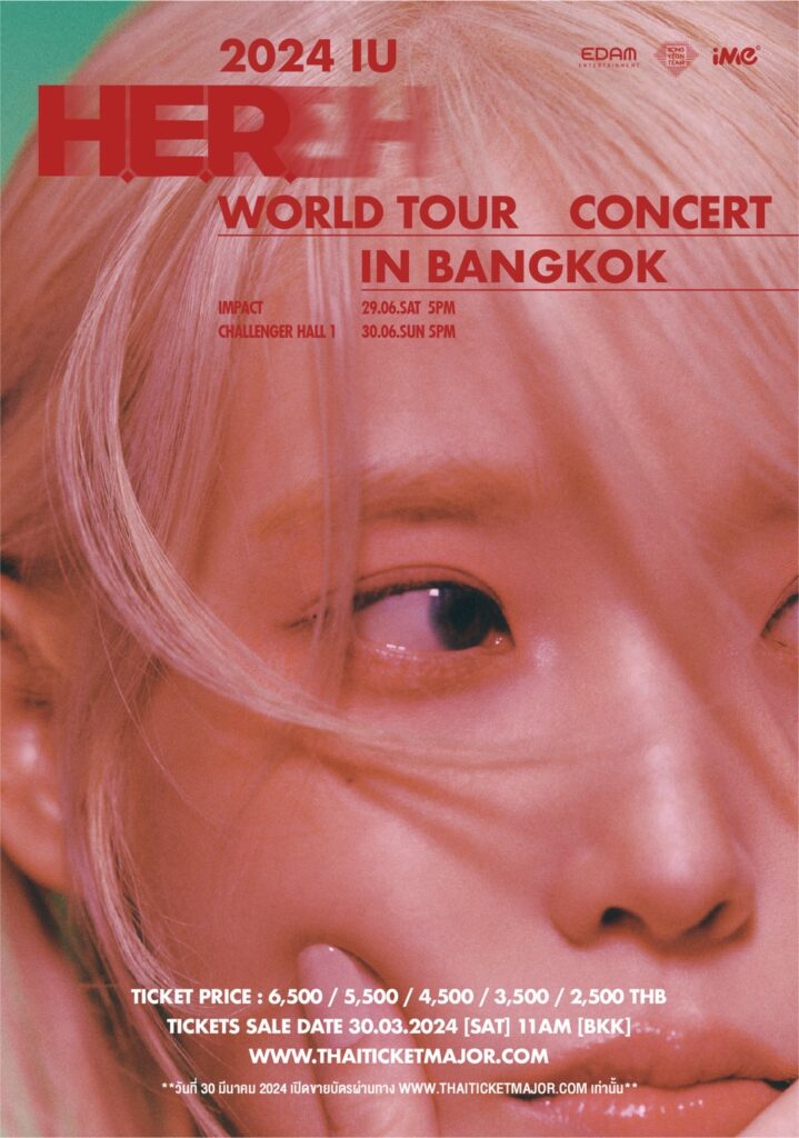 วันดี วันเริ่ด! ยูแอนาไทย เคลียร์คิวให้พร้อม วอร์มเสียงให้ปัง ผู้จัด “ไอมี่ไทยแลนด์” (iMe Thailand) พร้อมจัดเต็มแสงสีเสียง ให้แฟนๆ ได้มาสนุก และเต็มอิ่มความสุขไปกับเวิล์ดทัวร์คอนเสิร์ตที่ “ไอยู” เตรียมเพลงเพราะๆ และโชว์พิเศษมากมายเพื่อแฟนคลับที่รักทุกคน สำหรับงาน “2024 IU H.E.R. WORLD TOUR CONCERT IN BANGKOK” เริ่มเปิดขายบัตรในวันเสาร์ที่ 30 มีนาคม 2567 ตั้งแต่เวลา 11.00 น. เป็นต้นไป ผ่านทาง www.thaiticketmajor.com เท่านั้น!! และสำหรับช่องทางอื่นๆ ไม่ว่าจะเป็น ไทยทิกเก็ตเมเจอร์ทุกสาขา และ Call Center 02-262-3456 จะเริ่มเปิดบัตรขายในวันอาทิตย์ที่ 31 มีนาคม 2567 เป็นต้นไป ราคาบัตร 6,500 / 5,500 / 4,500 / 3,500 และ 2,500 บาท (บัตรนั่งทุกที่นั่ง) พร้อมรับโปสเตอร์ และบัตรแข็งเป็นของที่ระลึกสำหรับทุกที่นั่งทุกราคาบัตรอีกด้วย