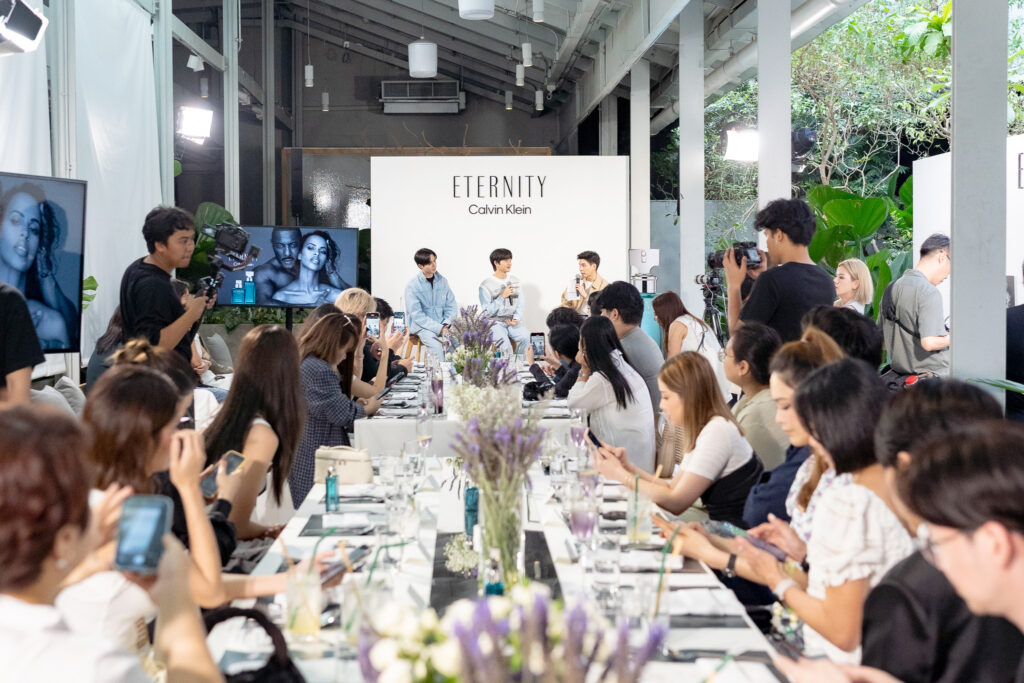 บริษัท โคตี้ โอเปอร์เรชั่น (ประเทศไทย) จำกัด หนึ่งในบริษัทด้านความงามรายใหญ่ที่สุดของโลกผู้นำเข้าและจัดจำหน่ายแบรนด์น้ำหอม CALVIN KLEIN นำโดยสองผู้บริหารระดับสูง อีลีน ลอน ผู้อำนวยการฝ่ายการตลาด และ ภาณุวัฒน์ ทองพุ่ม อำนวยการฝ่ายขาย บริษัท โคตี้ โอเปอร์เรชั่น (ประเทศไทย) จำกัด ร่วมจัดงานเปิดตัวน้ำหอมคู่ดูโอ้ใหม่ล่าสุดในไลน์ของ ETERNITY ได้แก่ ETERNITY AROMATIC ESSENCE FOR WOMEN และ ETERNITY AROMATIC ESSENCE FOR MEN น้ำหอมสองกลิ่นหอมตราบนิรันดร์ที่ครั้งนี้ได้นำเรื่องราวของความรักที่หลากหลาย หรือ Diverse Love Stories ยกย่องคุณค่าแห่งความรักเหนือกาลเ วลา นำโครงสร้างกลิ่นตระกูลน้ำมันสมุนไพร หรือ กลิ่นแนวฟูแฌร์ (Fougère) แบบดั้งเดิมมาตีความใหม่ผสานลูกเล่นท้าทายจากกลิ่นหอมของมะพร้าว สะท้อนความเสน่หาเย้ายวนอันถือเป็นมรดกสืบทอดกันระหว่างน้ำหอม ETERNITY แต่ละรุ่น ภายในงานเปิดตัวได้รับเกียรติจากสองศิลปินนักแสดงคู่ดูโอ้ชื่อดัง ซี พฤกษ์ พานิช และ นุนิว ชวรินทร์ เพริศพิริยะวงศ์ พร้อมด้วยคู่รักสุดหวานอย่าง แบม ปีติภัทร คูตระกูล และ กวาง ช้องมาศ บางชะวงษ์ คู่รักพี่น้องเพื่อนซี้นักร้องดัง บุ๊ค เบสท์ วงโอลีฟส์ เบสท์-ณิชชารีย์ กิจวิริยะธนโชติ และ บุ๊ค-ณัชชารีย์ กิจวิริยะธนโชติ ร่วมด้วย รัค ชีรีน วิศิษฐฎากุล และ ไปป์ บรม วิชญะเดชา สองคู่เลิฟสายอินฟลูฯ ที่ต่างมาร่วมงานเปิดตัวพร้อมถ่ายทอดเรื่องราวความรักในแบบ DIVERSE LOVE STORIES ด้วย ณ WH Café วังหิ่งห้อย