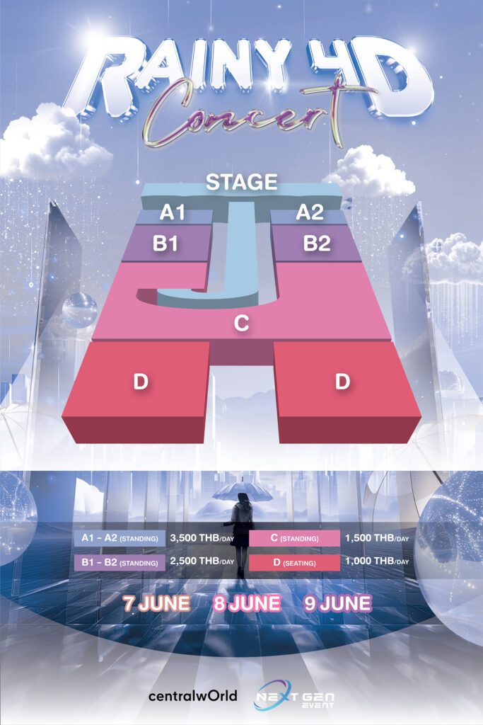 ฝนนี้มีคนกางร่มให้รึยัง?? เตรียมบอกลาความเหงาในวันฝนตกกับคอนเสิร์ต “RAINY 4D Concert” ปรากฏการณ์คอนเสิร์ตคนเหงาเหมาลานกลางเมือง เปิดประสบการณ์คอนเสิร์ต 4D Immersive Sens ครั้งแรกในประเทศไทย สัมผัสบรรยากาศ “ฟังเสียงกลิ่น ชิมไอฝน ปนเสียงเพลง” ที่ยังไม่เคยมีมาก่อน พร้อมจัดเต็มเอาใจสายโซเชียลถ่ายภาพสุดฟินกับบรรยากาศภายในงานเพื่อประกาศให้โลกรู้ว่าฝนนี้เราเทสดี เตรียมตัวให้พร้อม คนเศร้าใส่สีเนวี่ ส่วนคนแฮปปี้ใส่สีฟ้า แล้วมาปลดปล่อยความเหงา มาสัมผัสประสบ การณ์สุดพิเศษที่คุณจะไม่มีวันลืม ตั้งแต่วันที่ 7 – 8 – 9 มิถุนายน 2567 ณ ลานหน้าเซ็นทรัลเวิลด์