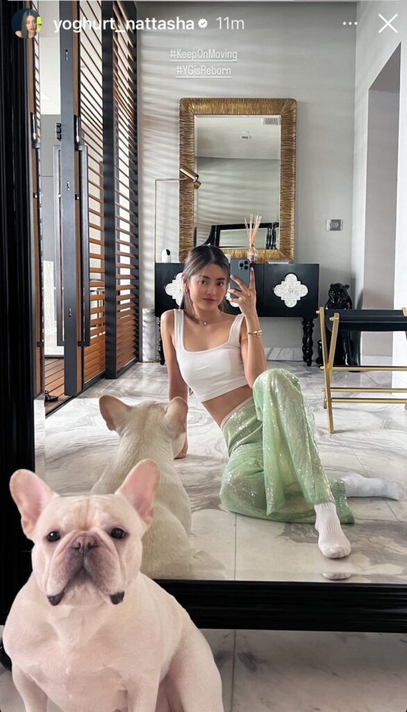 และเมื่อวันก่อนสาวโยเกิร์ตก็ได้เคลื่อนไหวอย่างต่อเนื่อง ด้วยการโพสต์ภาพสวยแซ่บตาแตก หุ่นสวย ผิวสวยสะดุดตา กับแคปชั่นว่า ภาษาอังกฤษสุดปังว่า “What is your perception of an ideal woman ?” แปลออกมาว่า “การรับรู้ของคุณเกี่ยวกับผู้หญิงในอุดมคติคืออะไร?” พร้อมติดแฮชแท็ก #KeepOnMoving และ #YGisReborn จนเกิดการเม้าท์มอยหอยสังข์จากชาวเน็ต ว่าเอ๊ะ! จะสื่อถึงใคร เพราะช่างประจวบเหมาะกับข่าวที่กำลังเป็นประเด็น เมื่ออดีตสามีอย่าง “พีเค” เปิดใจ เตรียมกลับไปขอโอกาสและเดินหน้าจีบใหม่อีกครั้งเพราะว่าอยากตื่นมาเห็นหน้าโยเกิร์ตในทุกเช้า ว่าซ่านนน ทำเอาเหล่าป้าข้างบ้านต้องขยันเป็นพิเศษ จับตาทุกโพสต์อย่างใกล้ชิด ตามติดยิ่งกว่าไลฟ์สด ประเด็นใหม่ “รีบอร์น” ที่หมายถึง “เกิดใหม่” ก็มาอีกแล้ว ซึ่งก็น่าจะเป็นคำตอบที่หลายคนอยากฟัง เพราะเหล่า #ทีมโยเกิร์ต ก็เชียร์ให้มูฟออน อย่ารีเทิร์นกลับไปจูบปากกินน้ำพริกถ้วยเก่ากับอดีตสามี ให้ทุกคนต้องรับประทานอาหารเม็ดเลยนะขอร้องเถอะสาว