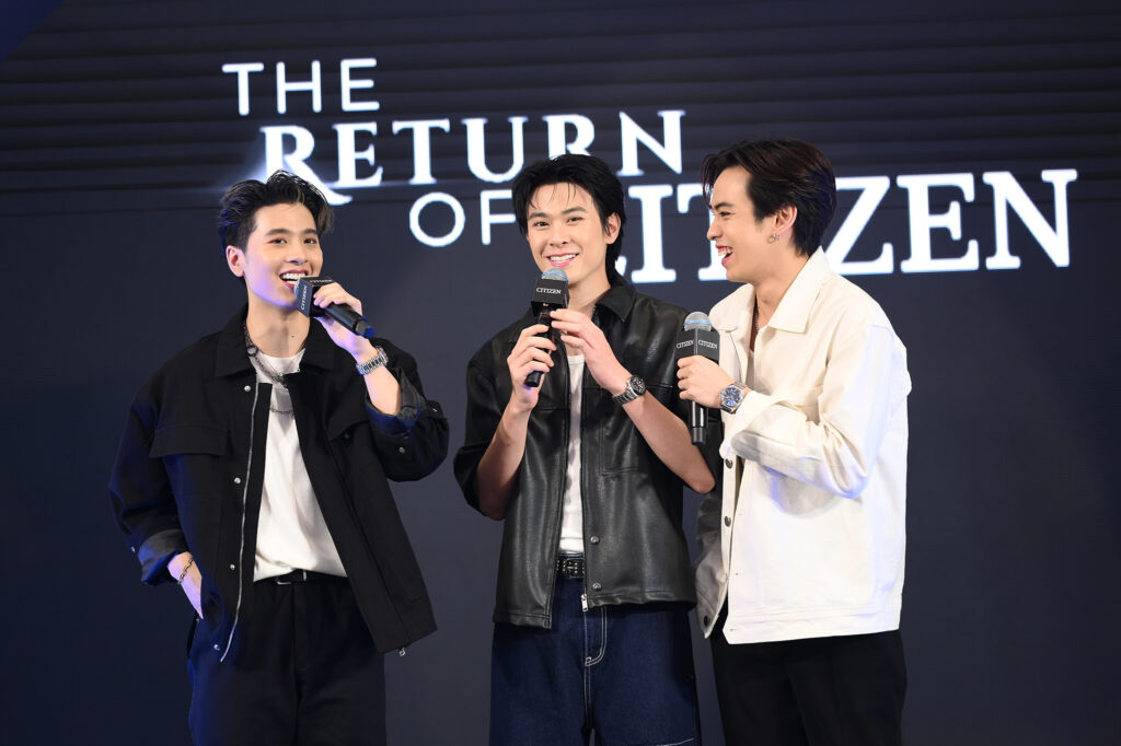 งานนี้ 3 หนุ่มบอกว่า “รู้สึกดีใจมากๆ ที่ได้มีโอกาสมาร่วมงานกับซิติเซน ซึ่งเป็นแบรนด์นาฬิกาจากญี่ปุ่นมีประวัติยาวนานกว่า 100 ปี ดีไซน์ของซิติเซนทั้ง 3 เรือนมีความเท่และมีคาแรกเตอร์ต่างกัน รวมถึงยังเป็นการได้กลับมาออกงานร่วมกันอีกครั้งหลังจากจบคอนเสิร์ตไป ต่อจากนี้ก็อยากให้แฟนๆ ติดตามผลงานคอยเป็นกำลังใจให้พวกเราเติบโตขึ้นในเส้นทางของแต่ละคนด้วยครับ”