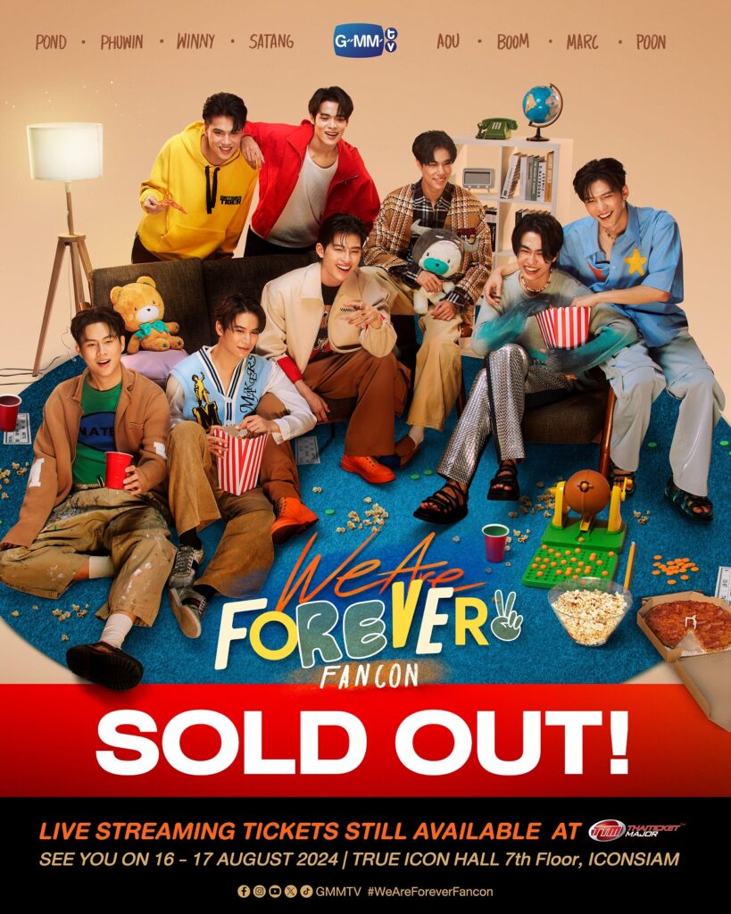 ฟีเวอร์สุดๆ สำหรับงาน “WE ARE FOREVER FANCON” จาก “GMMTV” แฟนคอนครั้งแรกในประเทศไทย ของ 8 หนุ่มฮอต “ปอนด์-ณราวิชญ์ เลิศรัตน์โกสุมภ์, ภูวินทร์ ตั้งศักดิ์ยืน, วินนี่-ธนวินท์ ผลเจริญรัตน์, สตางค์-กิตติภพ เสรีวิชยสวัสดิ์, อู๋-ธนบูรณ์ เกียรตินิรันดร์, บูม-ธราธร จันทรวรกาญจน์, มาร์ค-ณฐริศร์ วรกรเลิศสิทธิ์, ปูน มิตรภักดี” ในซีรีส์กระแสแรงแห่งปี “We Are คือเรารักกัน” ที่สร้างปรากฎการณ์ความฟินครั้งยิ่งใหญ่ ทำเอาแฟนๆ ทั่วโลกใจฟูสนั่นโซเชียล ทำสถิติขึ้นเทรนด์ X “อันดับ 1” Worldwide ยาวนานต่อเนื่องถึง 9 EP. ตั้งแต่ EP.6-EP.14 และครองแชมป์ซีรีส์ไทย “อันดับ 1” บนแอป iQIYI
