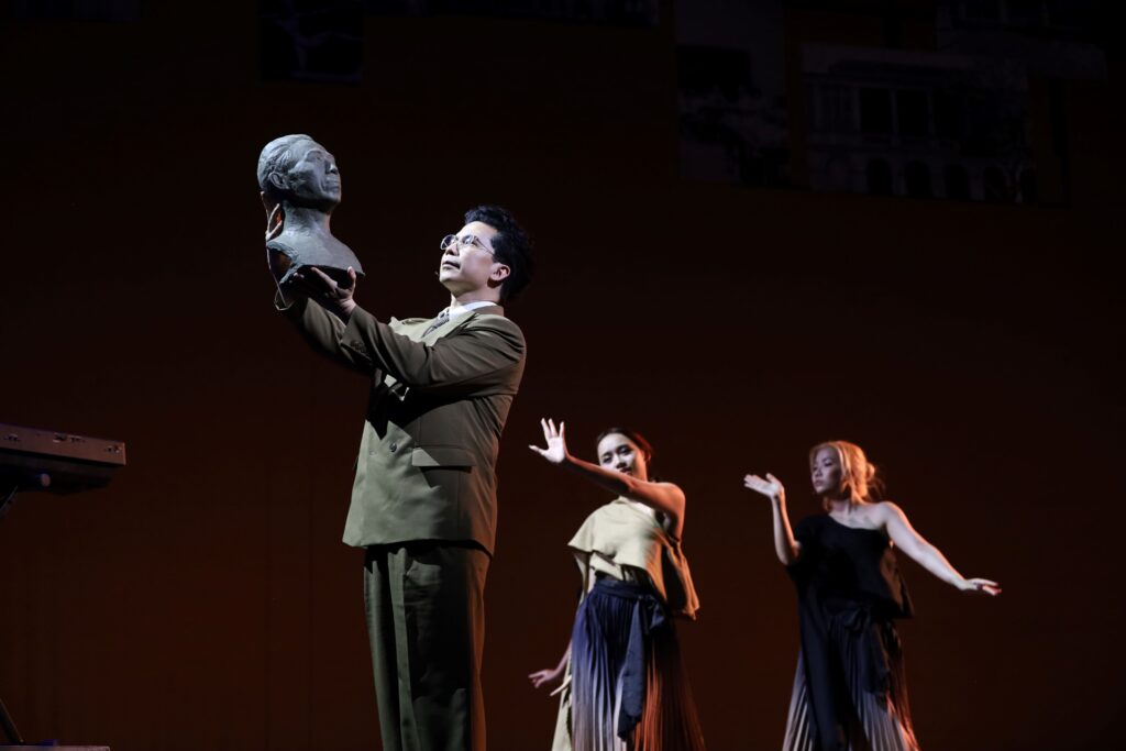 ทำเอาผู้ชมสนุกสนานและใจฟูไปกับ 3 รอบการแสดง ที่เฟิด Slot Machine มารับบท คอร์ราโด เฟโรชี (อาจารย์ศิลป์ ในวัยหนุ่ม) ซึ่งเจ้าตัวก็ออกอาการ ‘อิน’ ในคาแร็คเตอร์สุดๆ เพราะนอกจากจะเป็นศิษย์เก่าจากรั้วศิลปากร คณะมัณฑนศิลป์ โดยที่คุ้นเคยกับประวัติของ ‘อาจารย์ศิลป์’ ผู้ก่อตั้งมหาวิทยาลัยศิลปากรเป็นอย่างดี ด้วยจิตคารวะที่มีต่อ ‘อาจารย์ฝรั่ง’ ทำให้ได้ศึกษาบทอย่างเข้าใจและตีความเข้าถึงคาแร็คเตอร์ จนสามารถสื่อตัวตน ‘อาจารย์ศิลป์ พีระศรี’ ออกมาได้แนบเนียนจนน่าทึ่ง !!