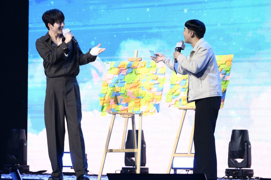 และพระเอกคนดังตั้งใจบินมาหาแฟน ๆ ทั้งที แน่นอนว่าก็ต้องใช้เวลาร่วมกัน และให้แฟน ๆ ได้ใกล้ชิดมากที่สุด ก็เลยไม่พลาดเปิดเวทีให้ผู้โชคดี ได้ขึ้นมาสนุกด้วยกัน ทั้งเกมโพสต์ท่าคู่สุดเป๊ะจาก 4 ซีนในซีรีส์ The Atypical Family ที่ทำเอาผู้โชคดีทั้ง 4 ฟินประหนึ่งเป็นนางเอกของเรื่องเลยทีเดียว แล้วก็ฟินกันต่อกับ 3 ภารกิจ Beautiful zone ทั้งคีบเจลลี่ ต่อมินิแชร์ และเดาะลูกปิงปอง ที่งานนี้ทำเอาถูกใจแฟน ๆ ทั้งฮอลล์ เพราะของรางวัลคือได้การ Hi Touch ทุกที่นั่งกับพระเอกในดวงใจนั่นเอง