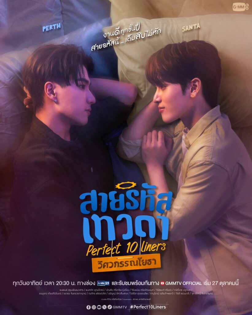 ติดตามชมซีรีส์ “สายรหัสเทวดา Perfect 10 Liners” ทุกวันอาทิตย์ เวลา 20.30 น. ทางช่อง GMM25 และรับชมพร้อมกันทาง Youtube : GMMTV OFFICIAL เริ่ม 27 ตุลาคมนี้ และพร้อมอัพเดททุกความเคลื่อนไหวได้ที่ www.facebook.com/gmmtvofficial & IG & YouTube & X & Weibo : GMMTV