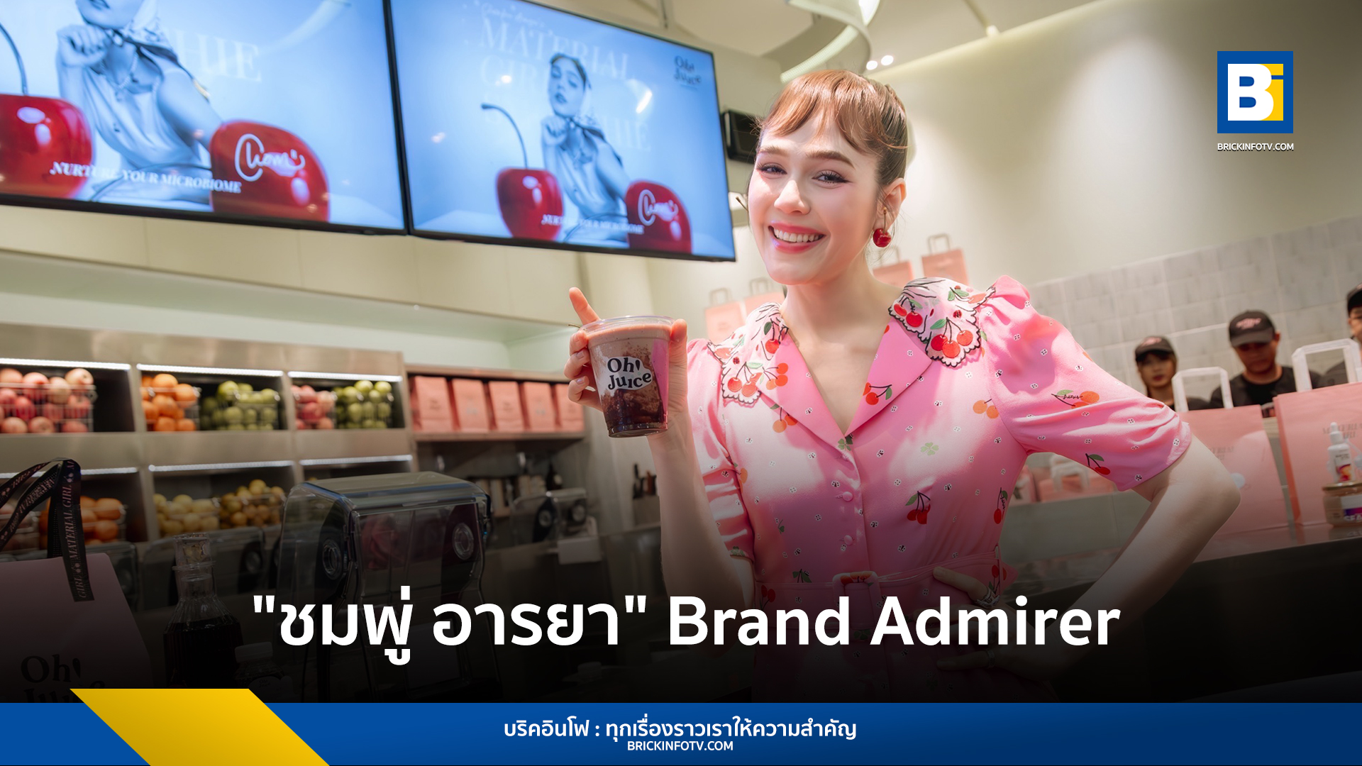 “ชมพู่ อารยา” เผยว่า “ดีใจนะคะที่ทาง Oh! JUICE ชวนชมมารับหน้าที่เป็น Brand Admirer เพราะอย่างที่รู้กันว่าชมเป็นสาย Smoothie Lover อยู่แล้ว ทานสมูทตี้เป็นประจำอยู่ทุกวัน ซึ่งก่อนหน้านั้นชมก็เป็นลูกค้าประจำของสมูทตี้ทาง Oh! JUICE อยู่แล้วด้วย เพราะเขาเลือกใช้วัตถุดิบที่สดใหม่และเพิ่มเติมโปรตีน วิตามินต่างๆ ที่ร่างกายต้องการมาอย่างเข้มข้น เลยเหมือนเป็นโอกาสที่ดีที่ได้ร่วมงานกัน แล้วชมยังก็ได้มีส่วนร่วมคิดค้นเครื่องดื่มสมูทตี้ที่ชื่อว่า Material Girl Smoothie ขึ้นมาด้วย โดยใช้วัตถุดิบหลักที่สำคัญคือเชอร์รี่สด, Sea Moss อาหารเสริมแบบธรรมชาติที่มีวิตามินสูงมาก รวมทั้ง Electrolytes ที่ช่วยรักษาสมดุลของร่างกาย ซึ่งยังไม่เคยมีที่ไหนทำมาก่อน แล้วชมก็เป็นคนที่ชอบทานเชอร์รี่มากๆ ด้วย เลยคิดเป็นสูตรนี้ขึ้นมา ซึ่งน่าจะตอบโจทย์คนส่วนใหญ่ที่ชื่นชอบเชอร์รี่เหมือนกันค่ะ ก็ฝากให้ทุกคนมาลิ้มลองรสชาติของ Material Girl Smoothie กันได้นะคะที่ Oh! JUICE ทุกสาขาเลยค่ะ”