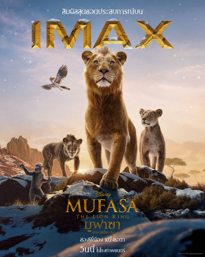 “Disney’s Mufasa: The Lion King มูฟาซา: เดอะ ไลอ้อน คิง” ถ่ายทอดเรื่องราวการเดินทางของมูฟาซา ผ่านภาพและเสียงที่งดงามสมจริง นำผู้ชมดื่มด่ำไปกับโลกแห่งแอฟริกา ราวกับได้เข้าไปอยู่ในเหตุการณ์จริง