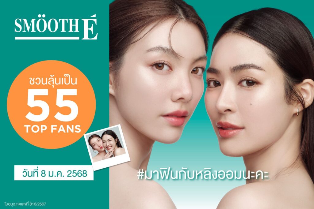 สมูทอี (Smooth E) ผลิตภัณฑ์เวชสำอางชื่อดัง จัดแคมเปญส่งท้ายปีเอาใจ Gen Z ชวนช็อปสินค้าลุ้นเป็น Top Fan คว้ารางวัล “ไพรเวตทอล์ก” สุดเอ็กซ์คลูซีฟกับ “หลิง-ออม” พรีเซนเตอร์คู่ใหม่ในงาน “New Face of Smooth E” พร้อมของรางวัลพิเศษรวมกว่า 55 รางวัล